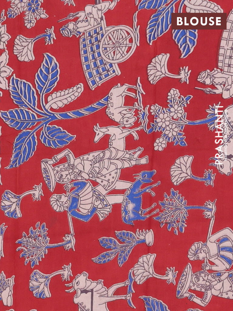 Bengal soft cotton saree peacock blue and red with plain body and zari woven border