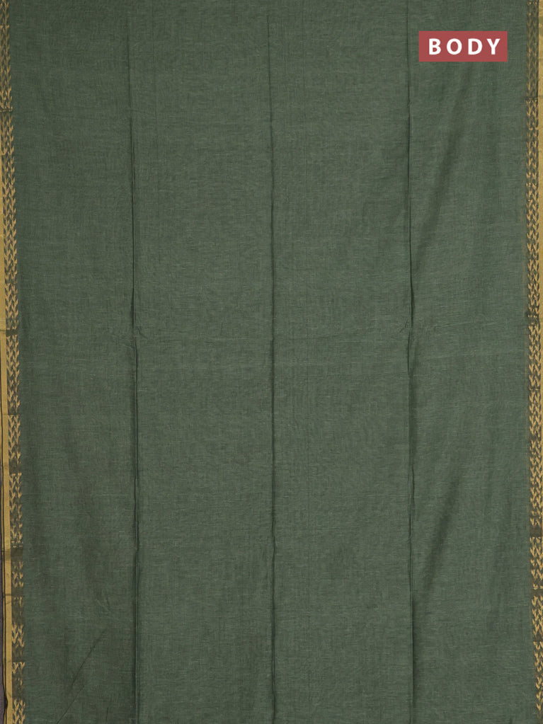 Bengal soft cotton saree peacock green and mustard yellow with plain body and zari woven border
