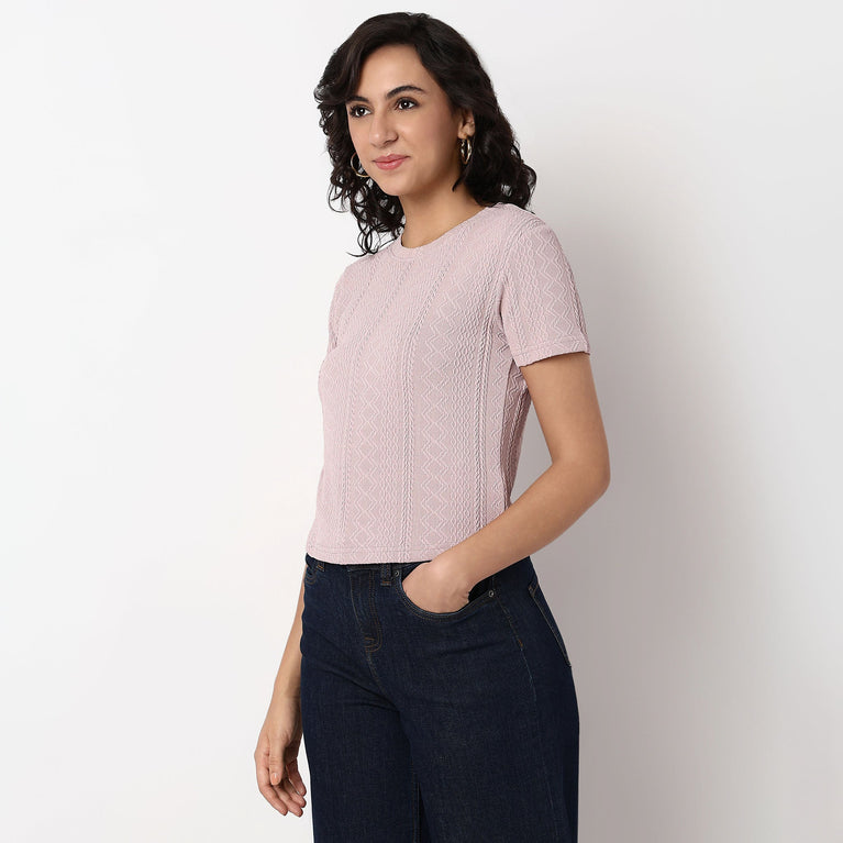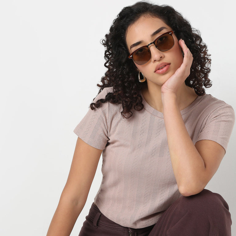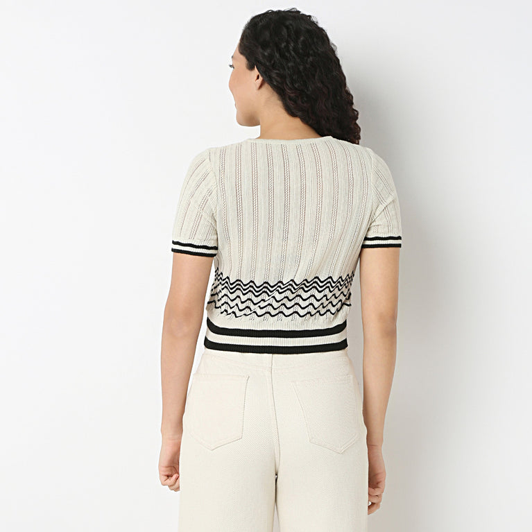 Betty Round Neck Fashion Tee With Chevron Pattern