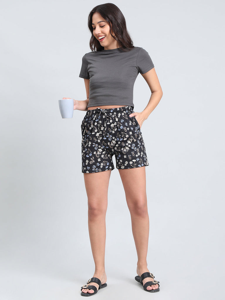 Look chic while lounging in our Black Printed Knit Lounge Shorts. Made from cotton, it has a elasticised waistband with drawstring closure, slant pockets is extremely light weight.