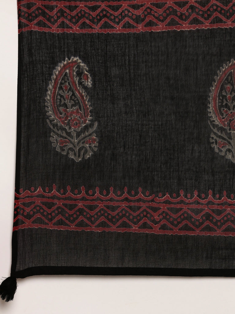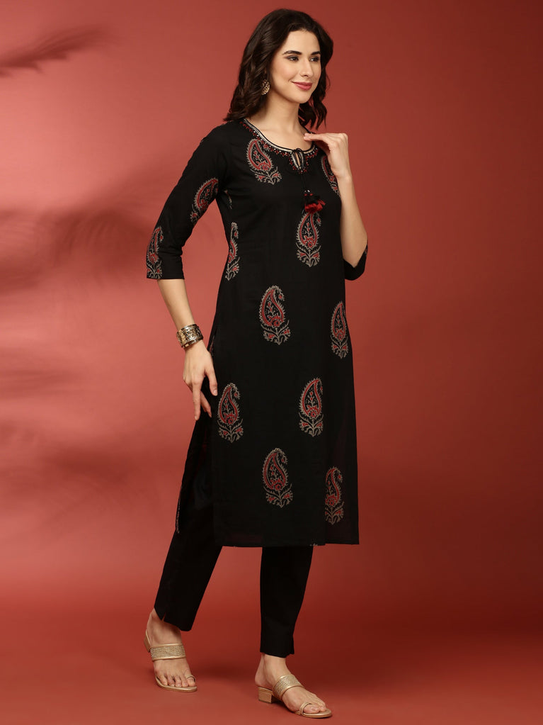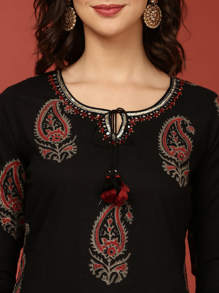 Black Cotton Printed Three Piece Set