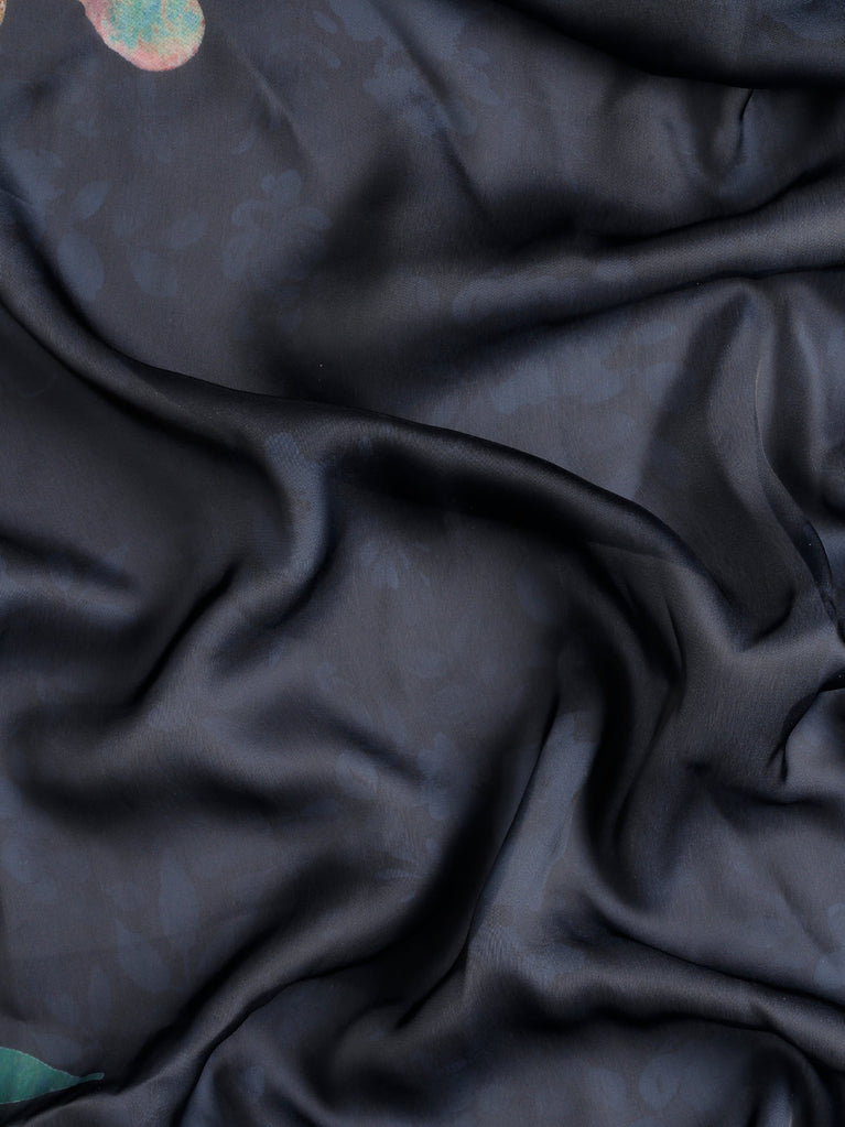 Elevate your elegance with this black stain floral printed saree, featuring intricate Swarovski embroidery that catches the light with every movement. The delicate floral design combined with sparkling details offers a refined and graceful look, perfect for special occasions. Crafted to enhance your sophistication, this saree blends traditional charm with modern glamour seamlessly.