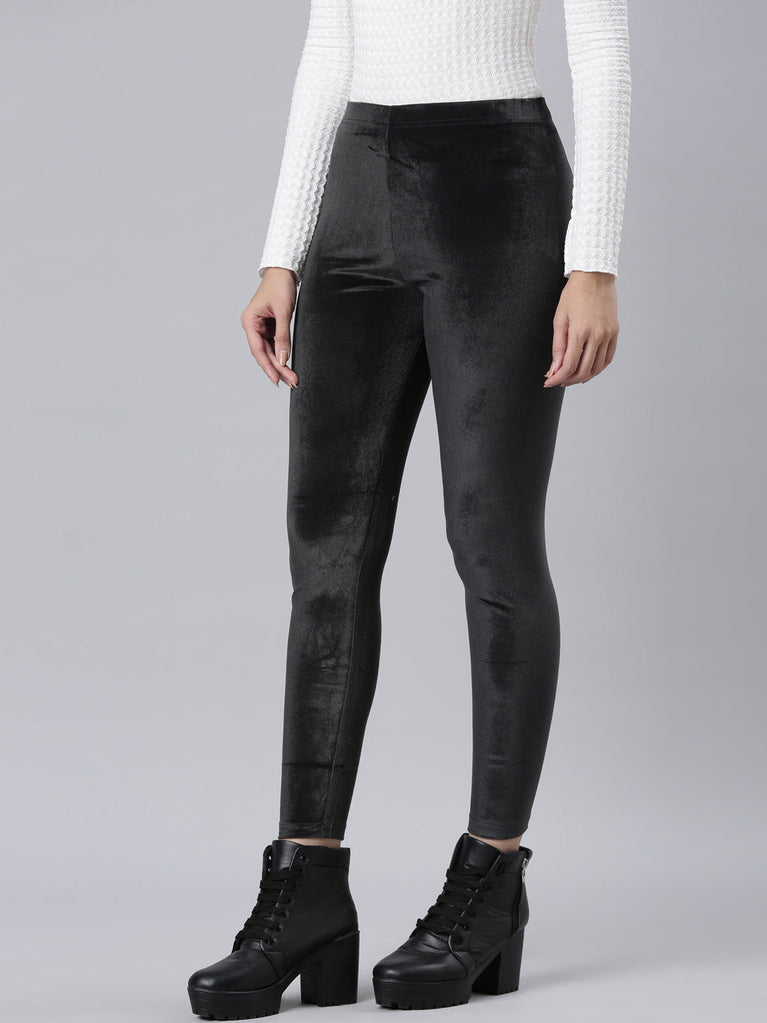 Stay warm this winter in the Solid Black Velour Leggings. Made from Polyester & Spandex this mid rise slip leggings with elasticised waistband & slim fit are perfect for cozying up this inters