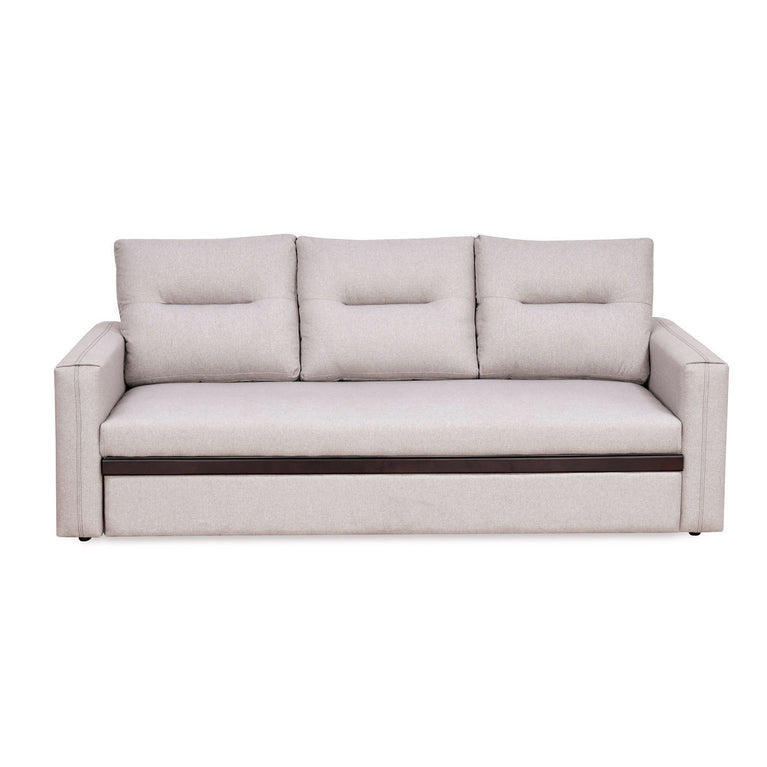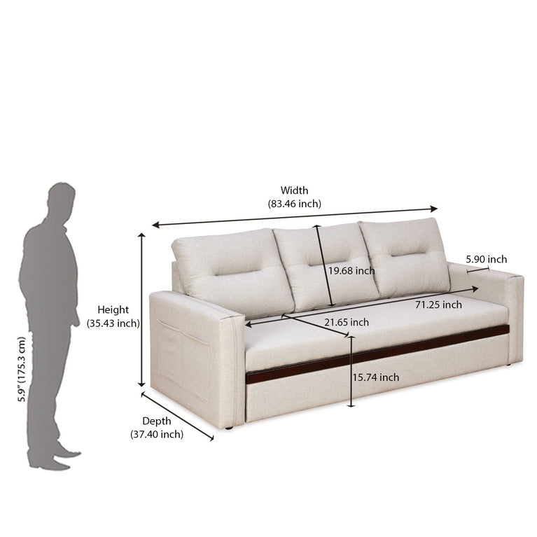 Boxton Fabric 3 Seater Sofa Cum Bed With Side Pockets (Light Brown)
