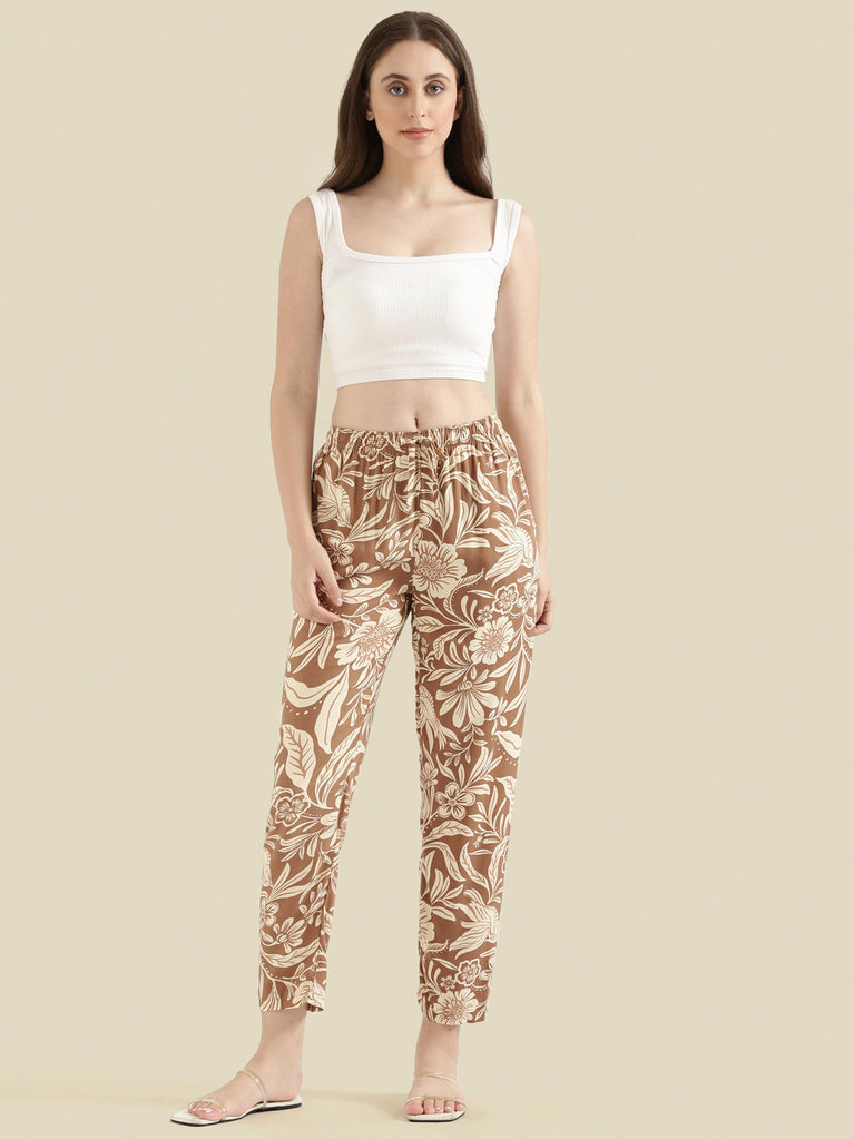 Brown Woven Viscose Printed Lounge Pants