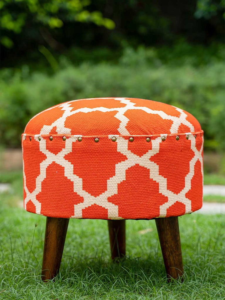 A richly cardinals red saree with a silk base, which features gold zari woven floral jaal pattern on the body and border. Accentuated with multi-colour thread, glass beads and stone embroidery, that adds to the whole look. Suitable for festive wear, and wedding parties.