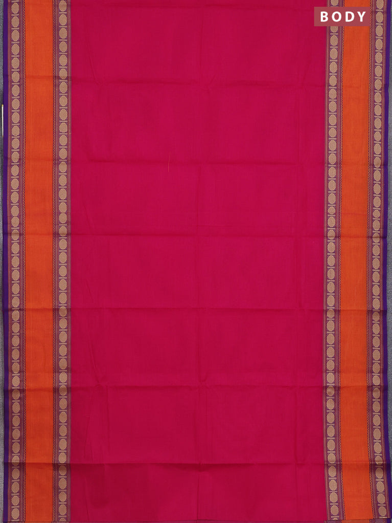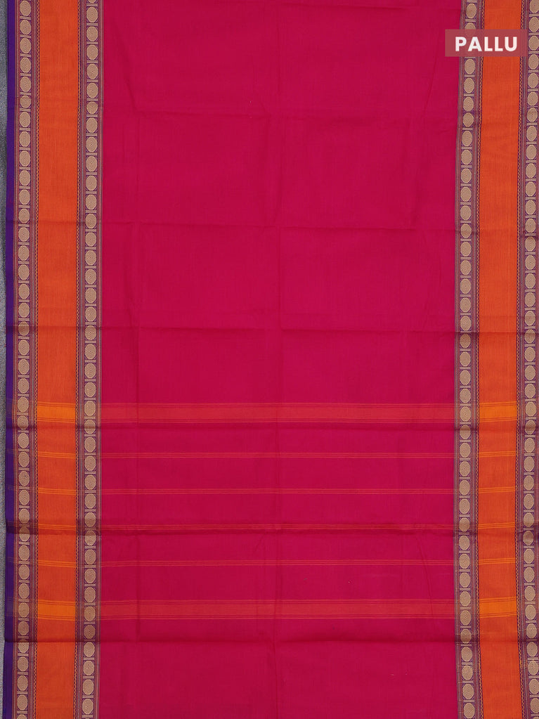 Chettinad cotton saree pink and purple shade with plain body and rettapet thread woven border