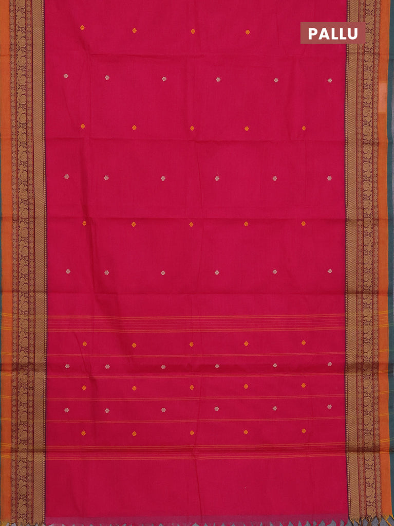 Chettinad cotton saree pink and dual shade of teal blue with thread woven buttas and zari woven simple border