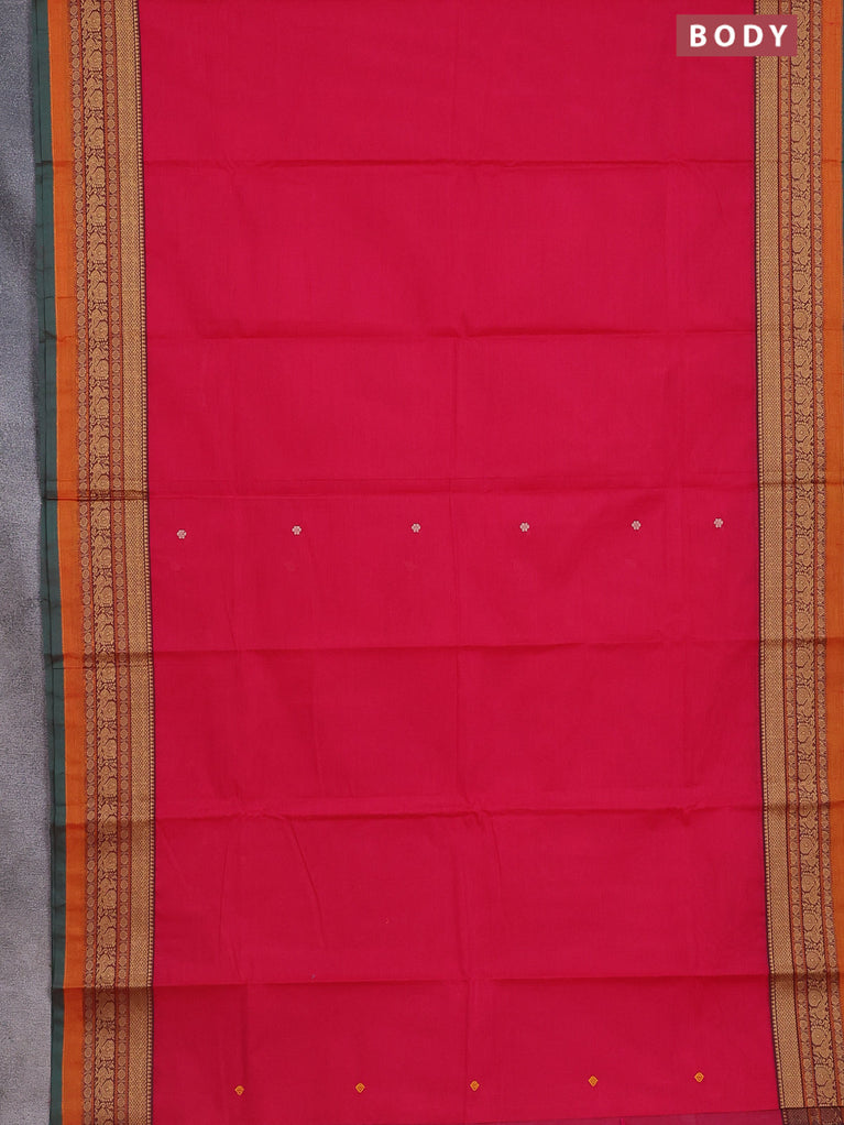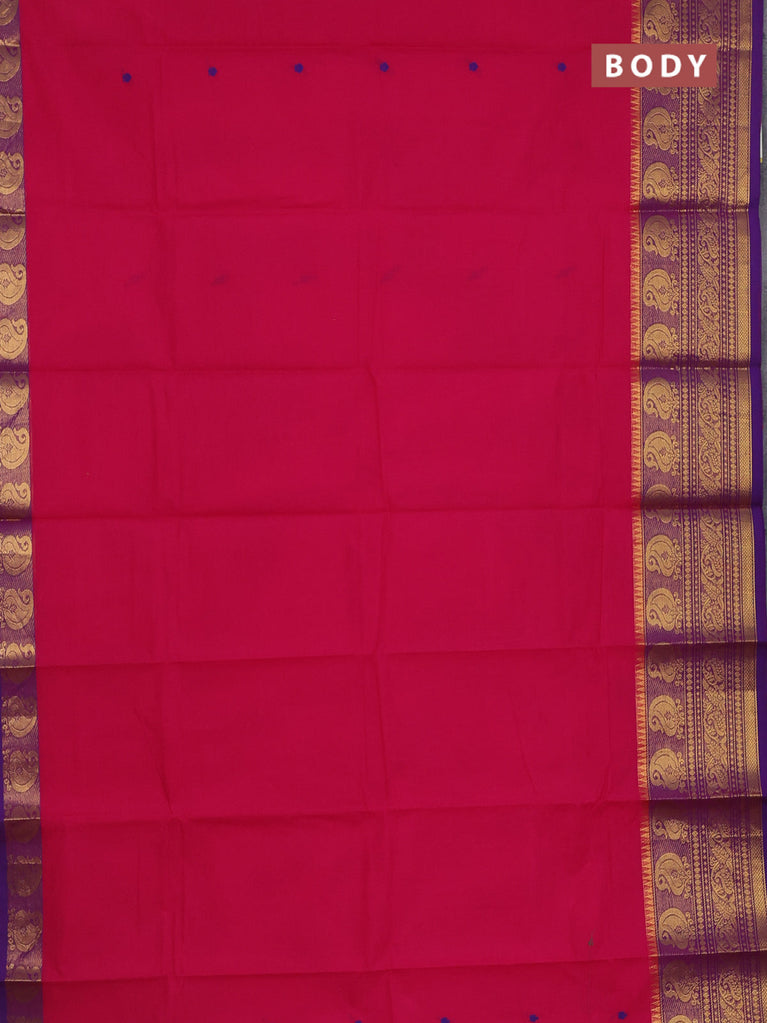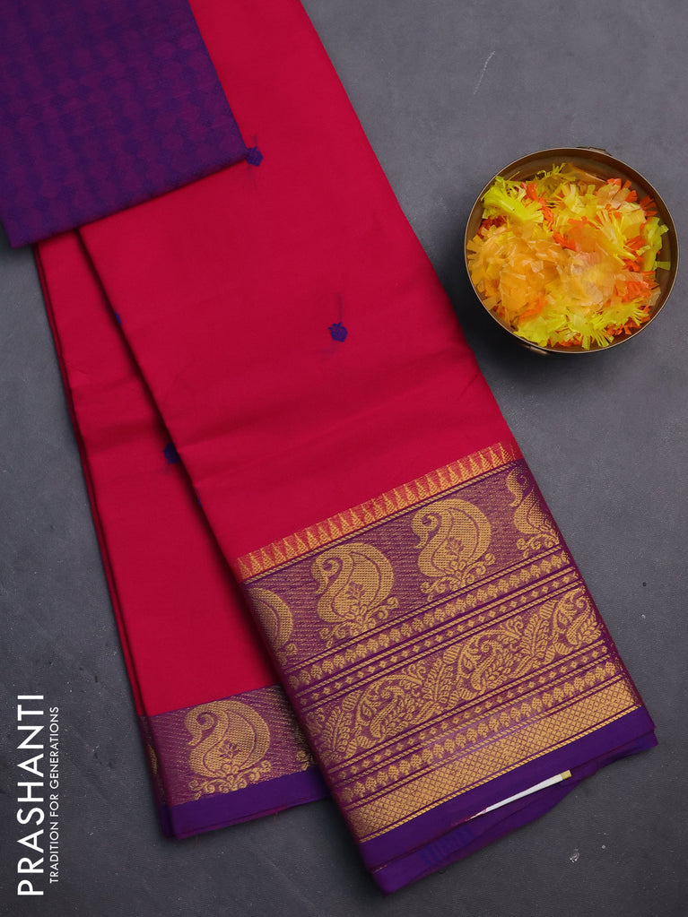 Chettinad cotton saree purpel and reddish pink with thread woven buttas and rattapet zari woven border
