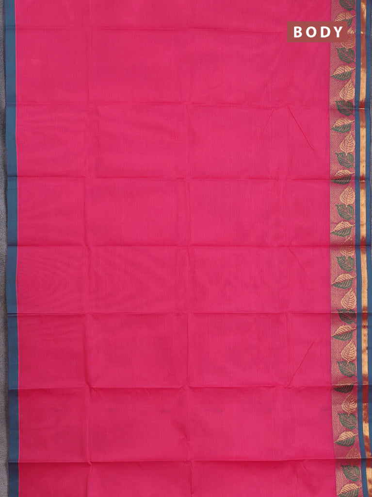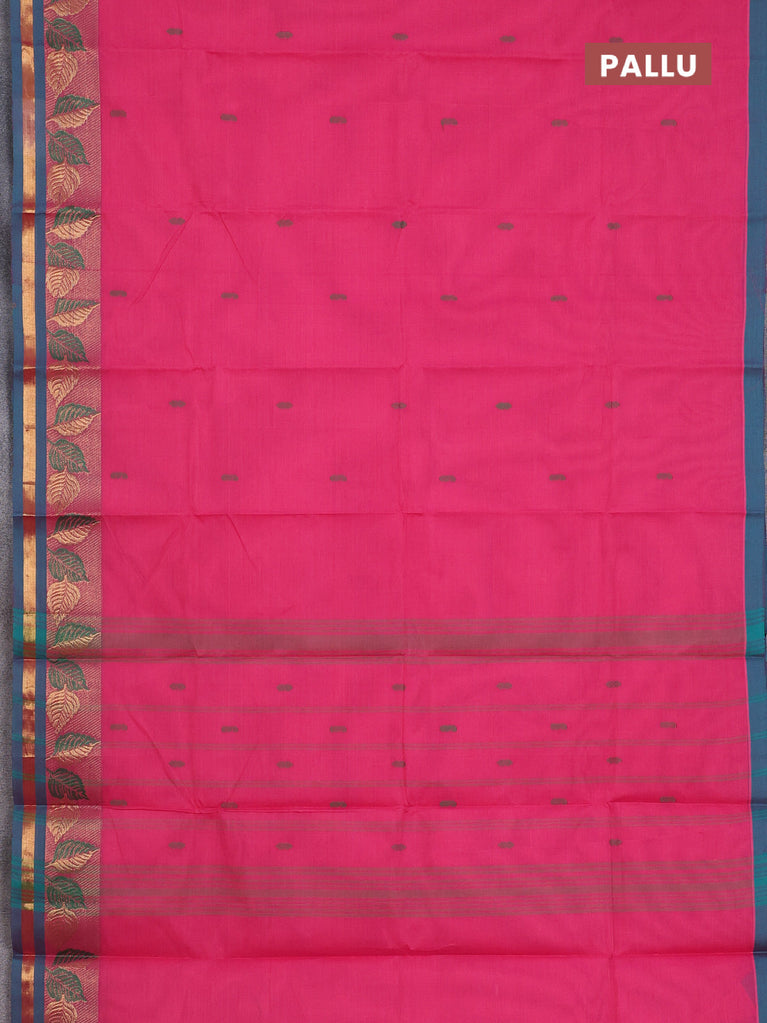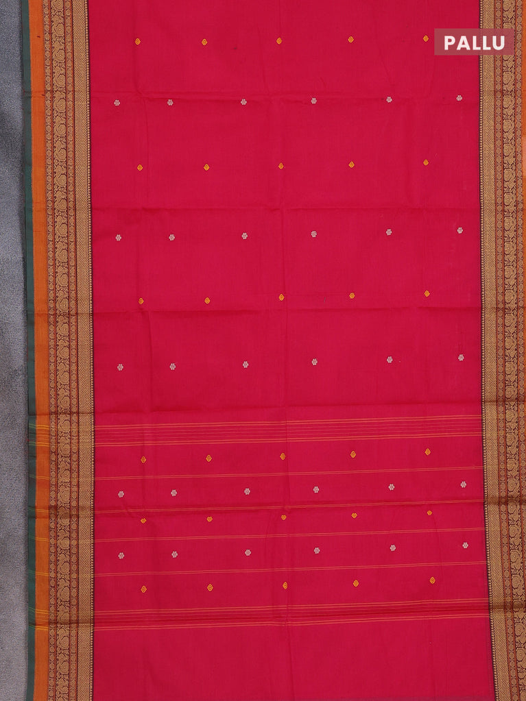 Chettinad cotton saree pink and dual shade of teal green with thread woven buttas and leaf design zari woven border