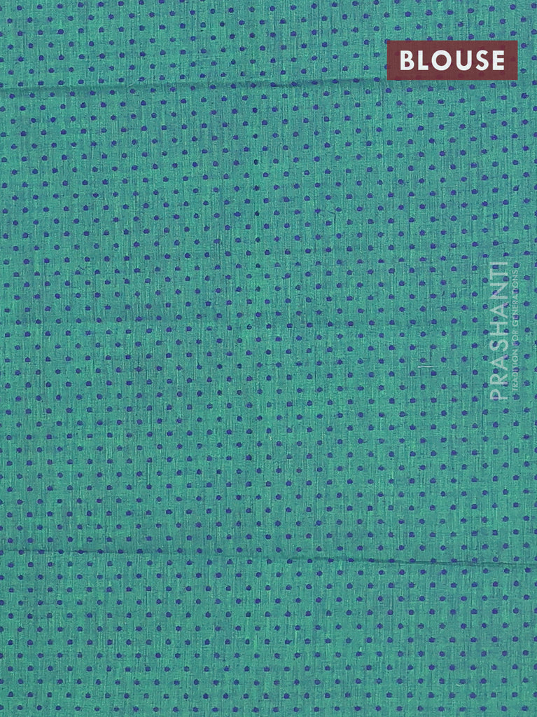 Chettinad cotton saree teal green and blue with thread woven buttas and temple disign zari woven border
