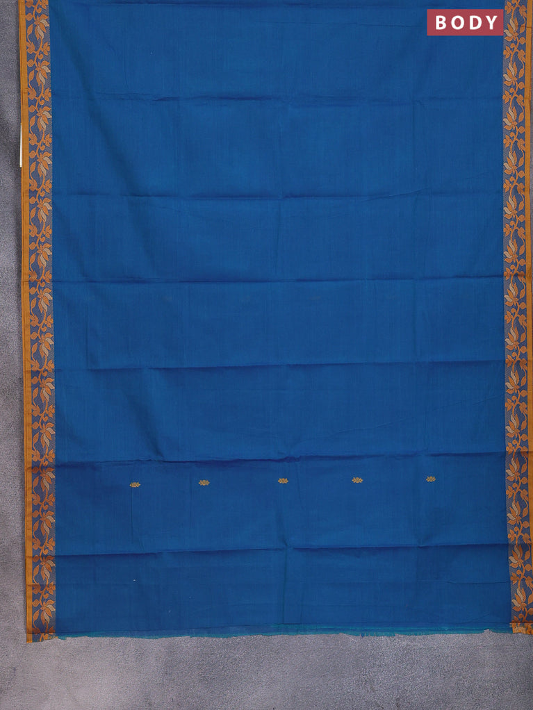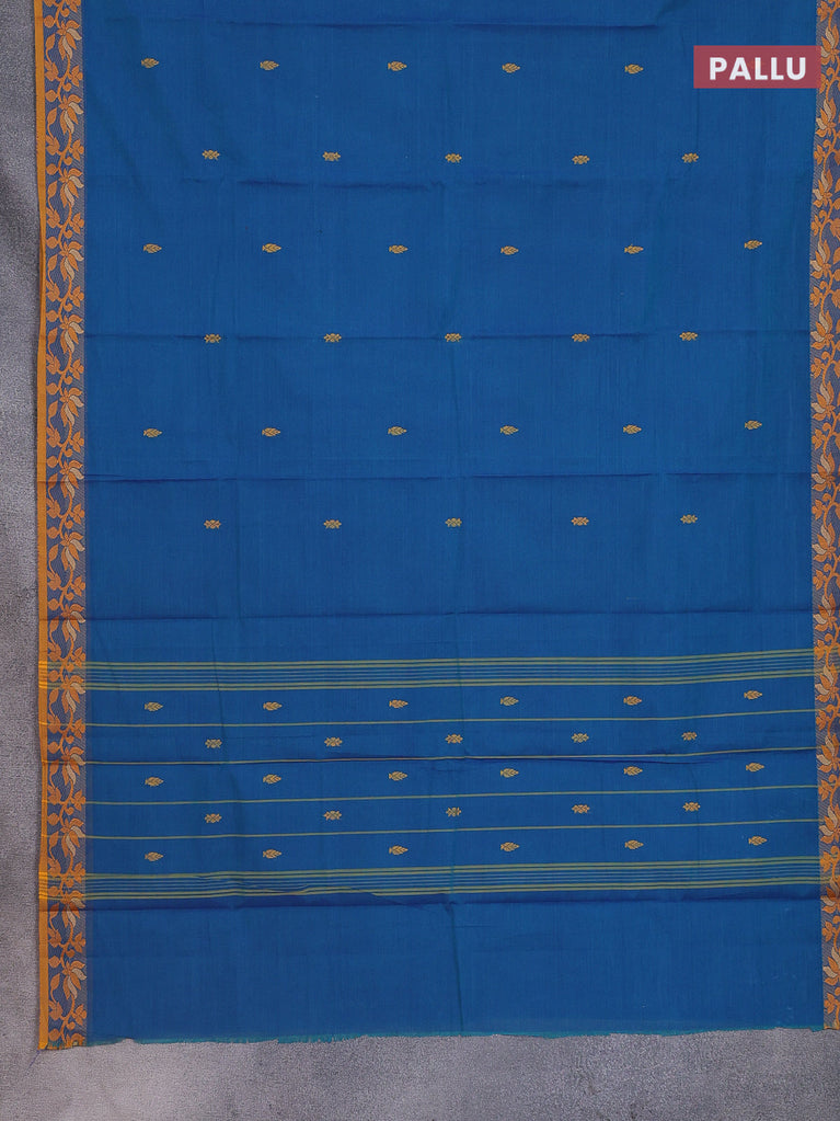 Chettinad cotton saree teal blue and yellow with thread woven buttas and floral design border