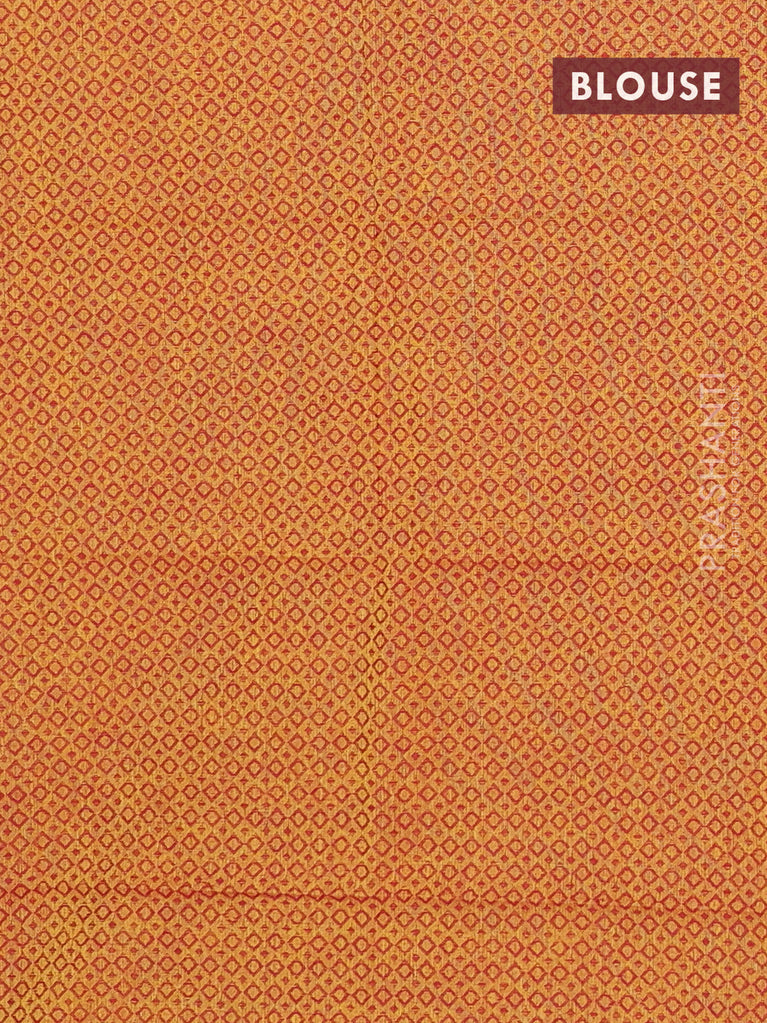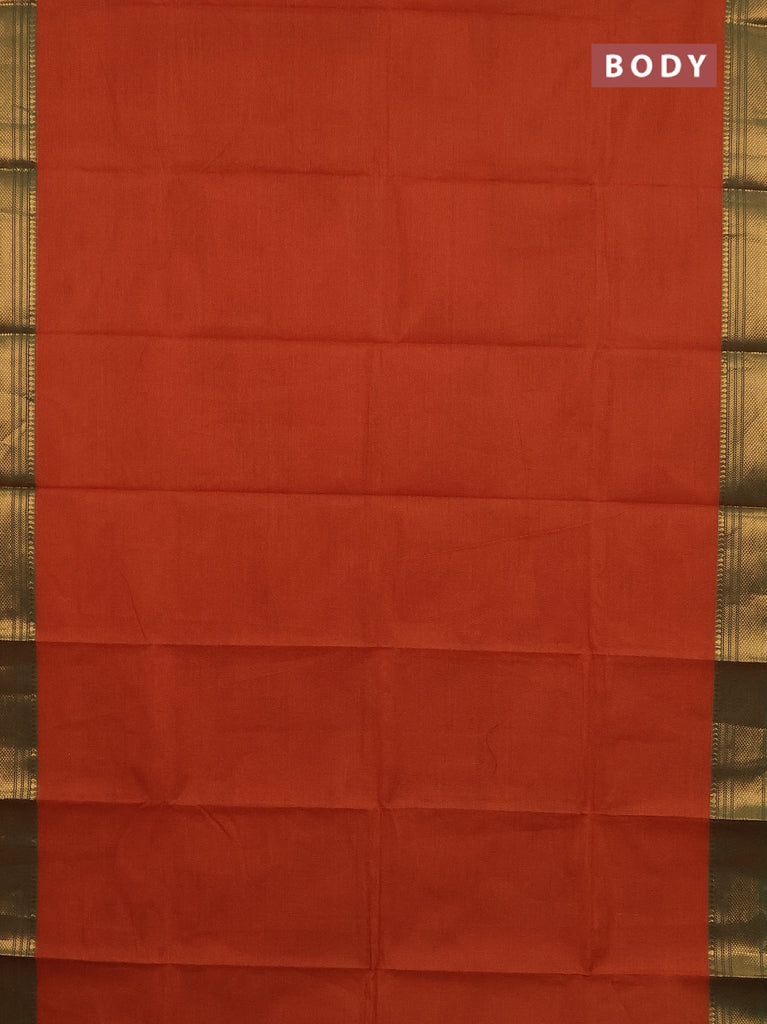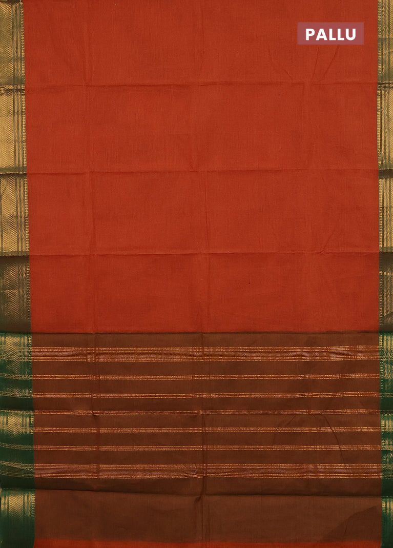 Chettinad cotton saree rust shade and green with allover small checked pattern and zari woven border