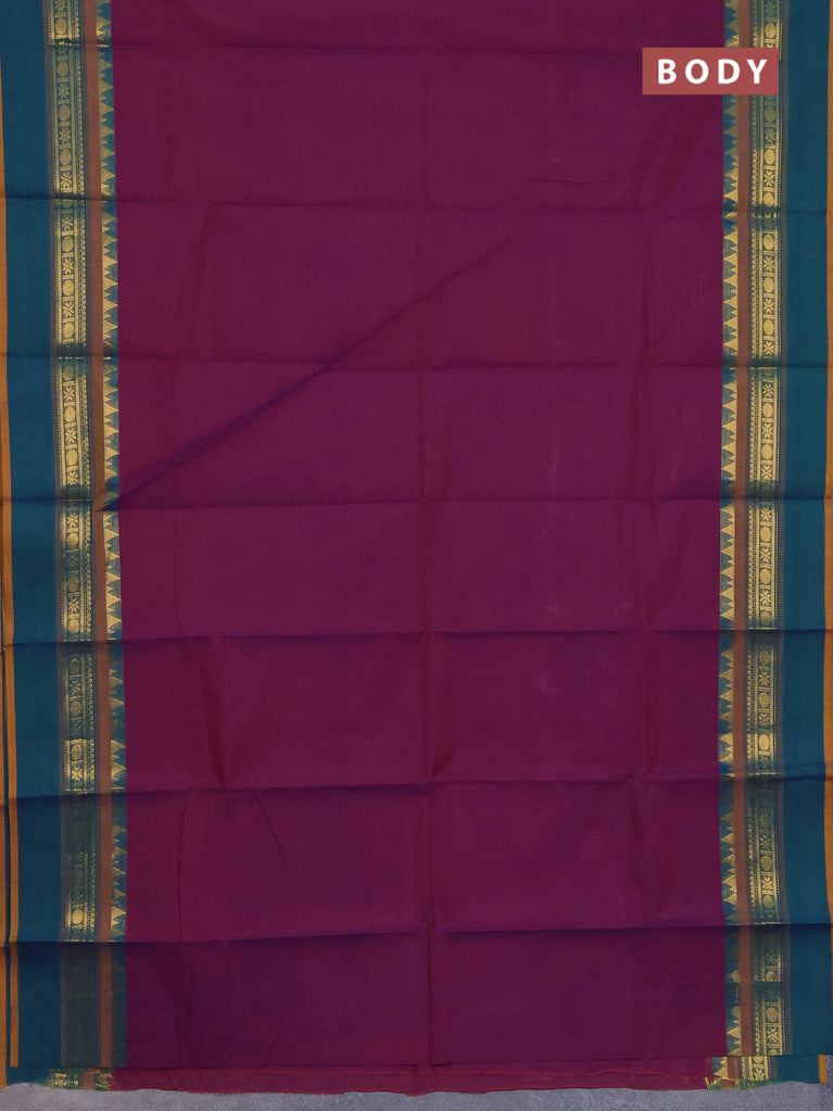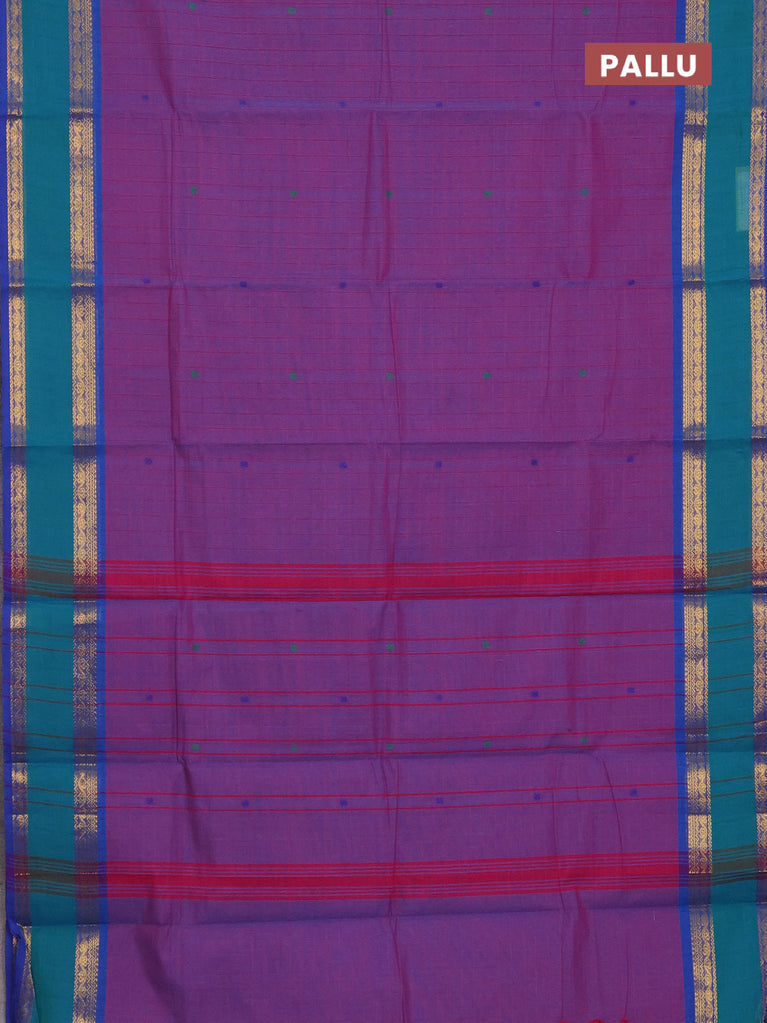Chettinad cotton saree purple and peacock green with thread woven buttas and temple disign zari woven border