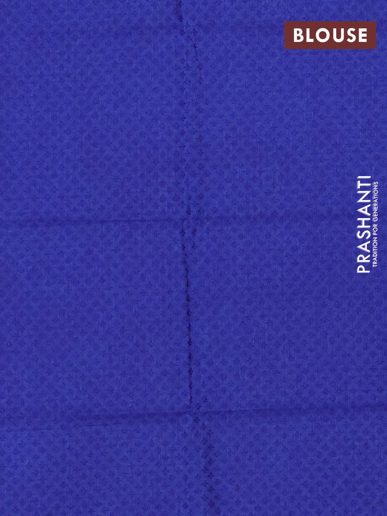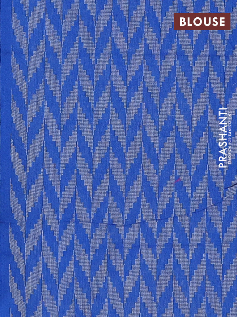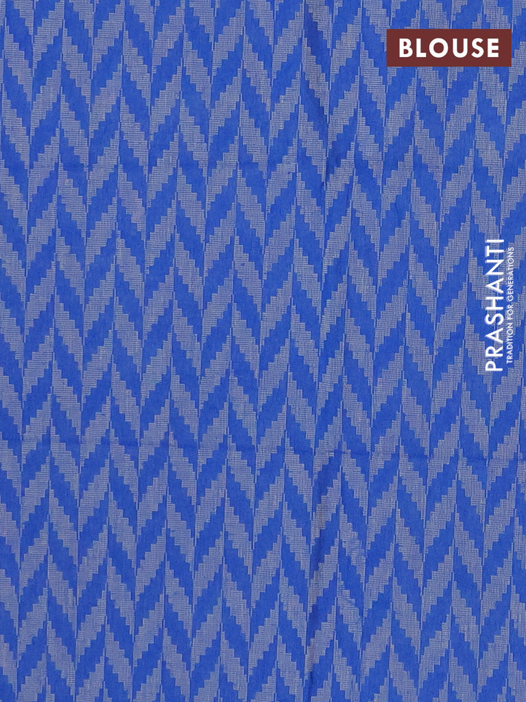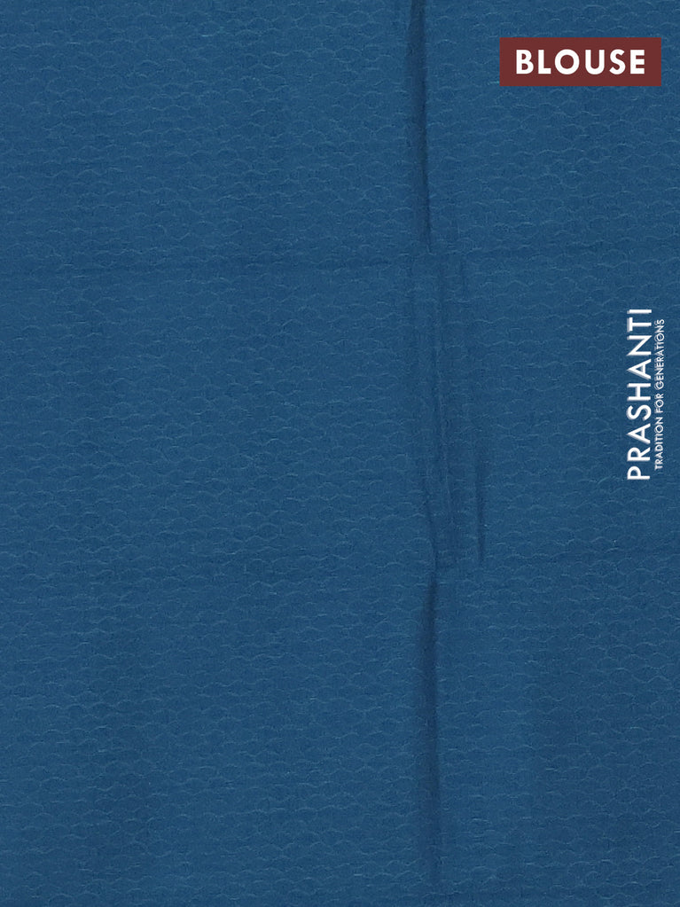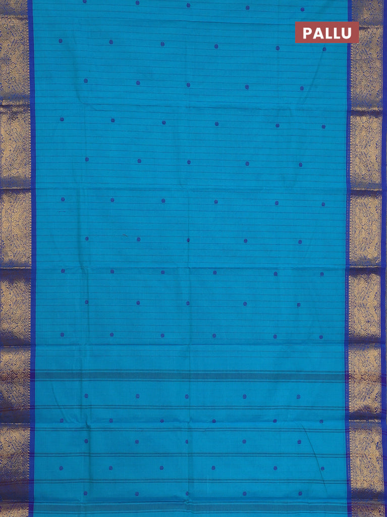 Chettinad cotton saree teal blue and blue with allover stripes pattern & thread woven buttas and zari woven border