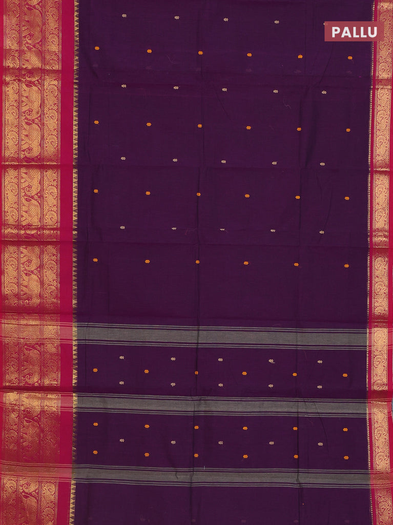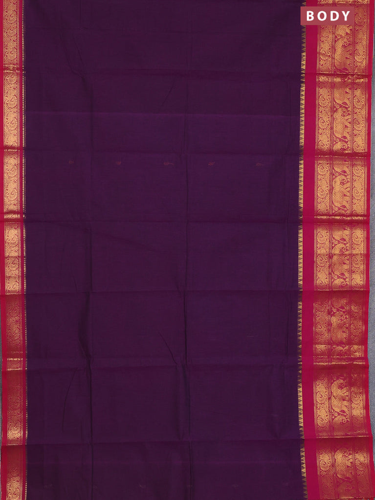 Chettinad cotton saree purple and pink with thread woven buttas and annam & elephant zari woven border