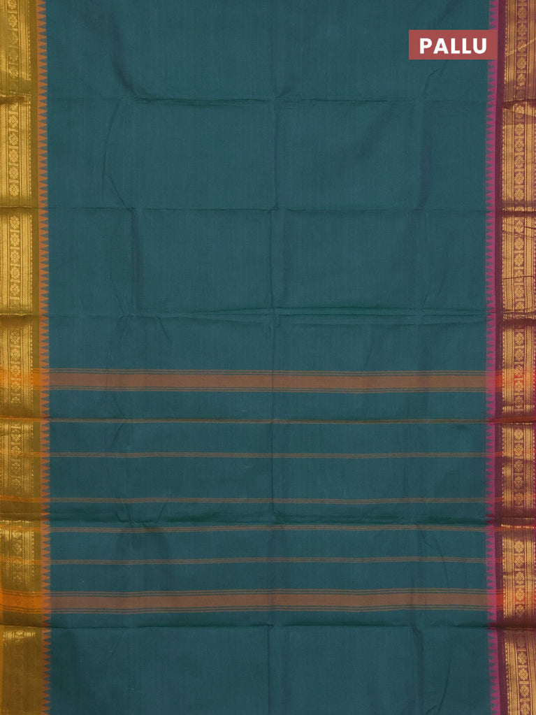 Chettinad cotton saree teal green and dark pink with thread woven buttas and thread woven border
