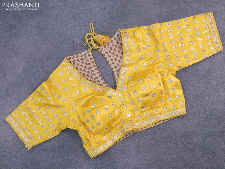 Chiffon silk saree mango yellow with satin finished in borderless style & embroidered readymade blouse