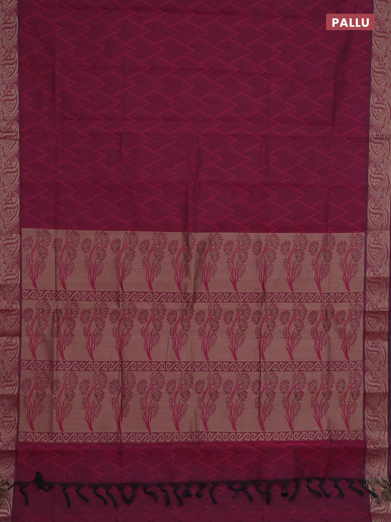 Coimbatore cotton saree dark magenta pink and sandal with allover self emboss and thread woven border