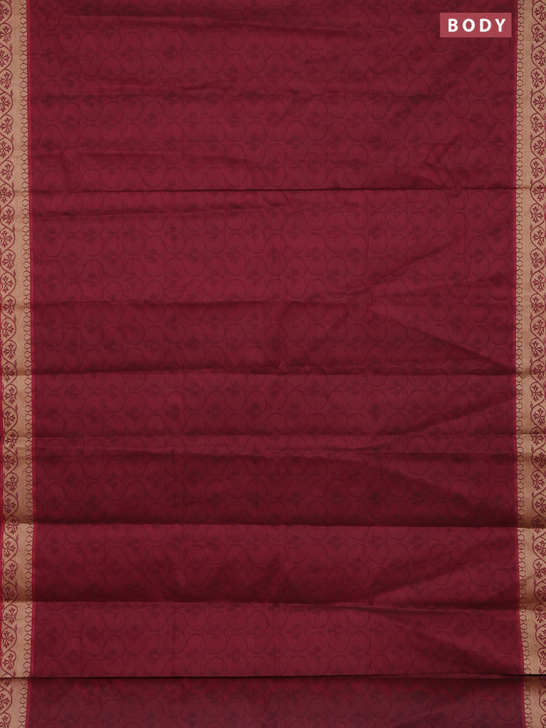 Coimbatore cotton saree deep maroon and sandal with allover self emboss and thread woven border