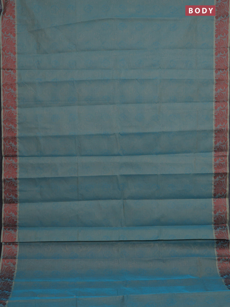 Coimbatore cotton saree cs blue and sandal with allover self emboss and thread woven border