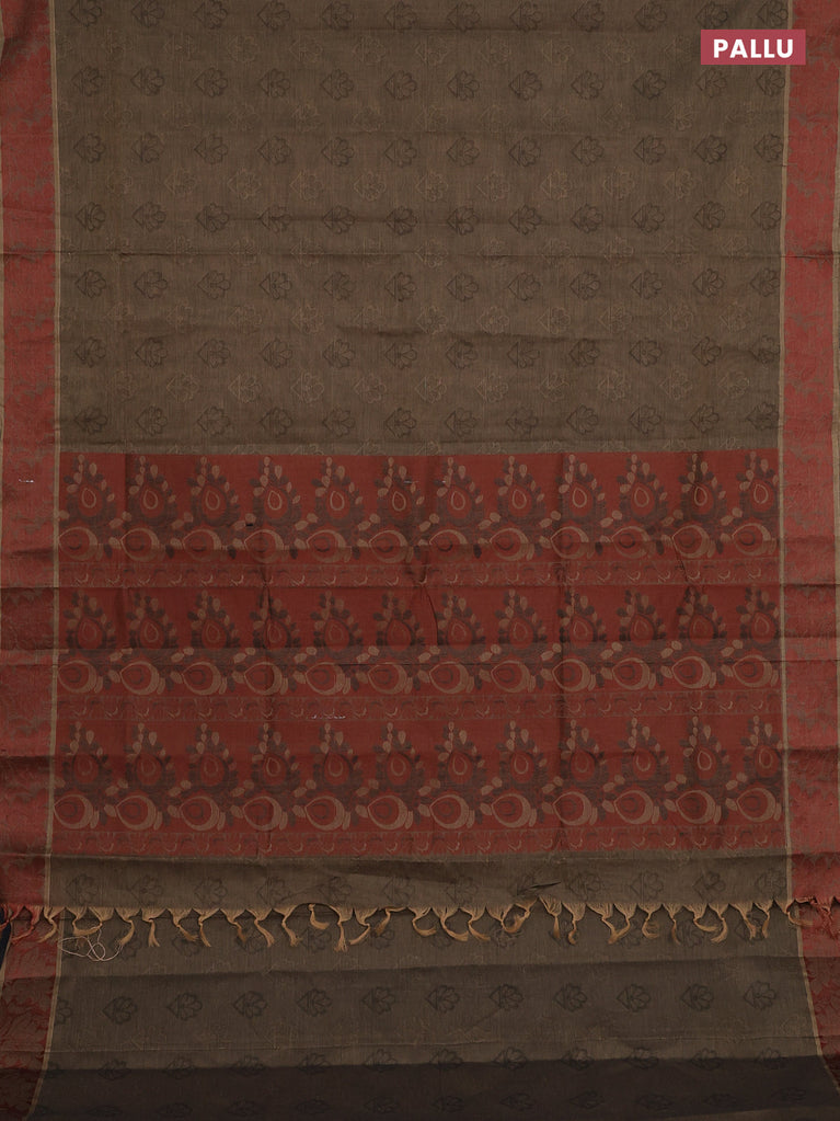 Coimbatore cotton saree dark sandal and teal green with allover self emboss and thread woven border