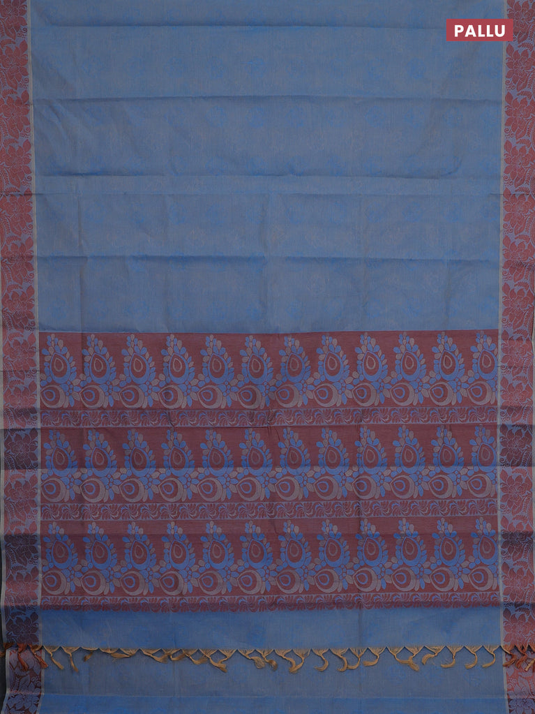 Coimbatore cotton saree cs blue and brown with allover self emboss and thread woven border