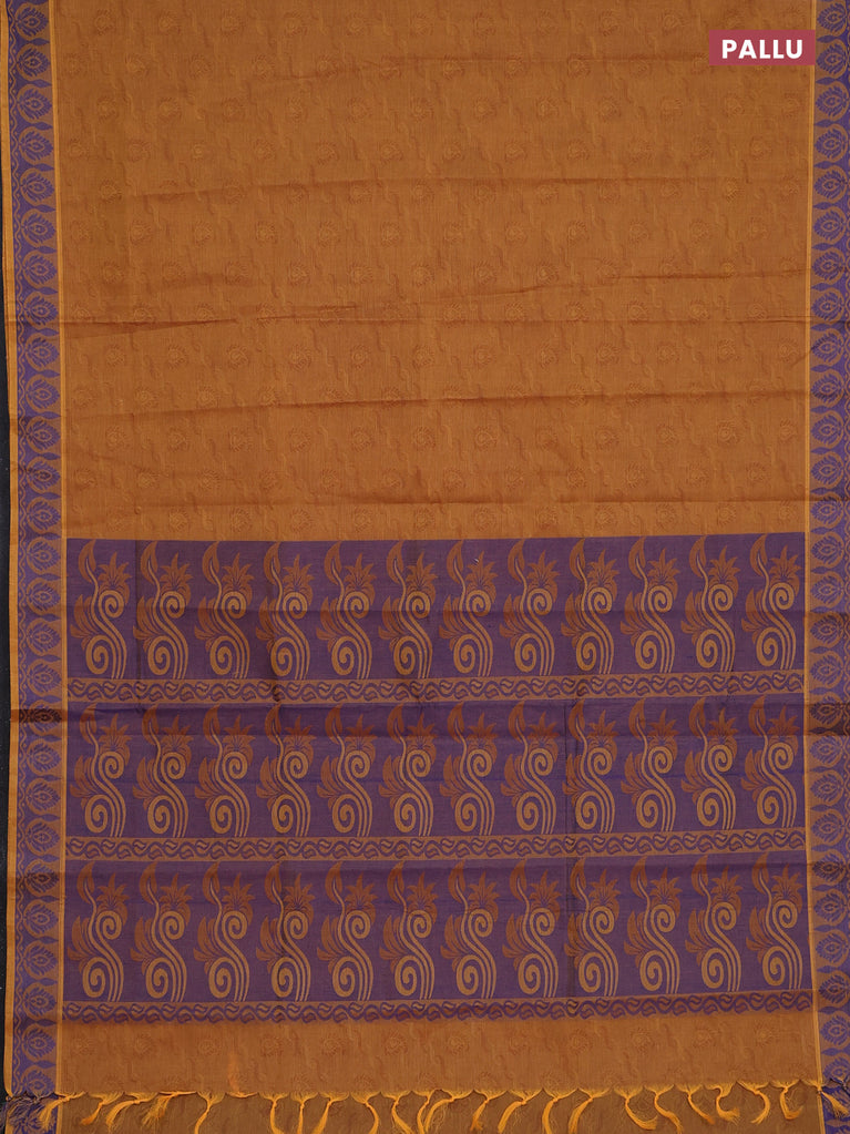 Coimbatore cotton saree dual shade of dark mustard with allover self emboss and thread woven border