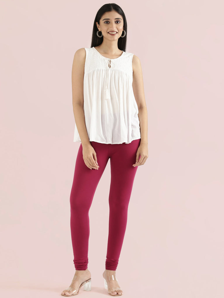 Complete any look, be it traditional or western with these Solid Dark Fuchsia Leggings. Made from cotton & elastane, it has a elasticised waistband & has a slim fit