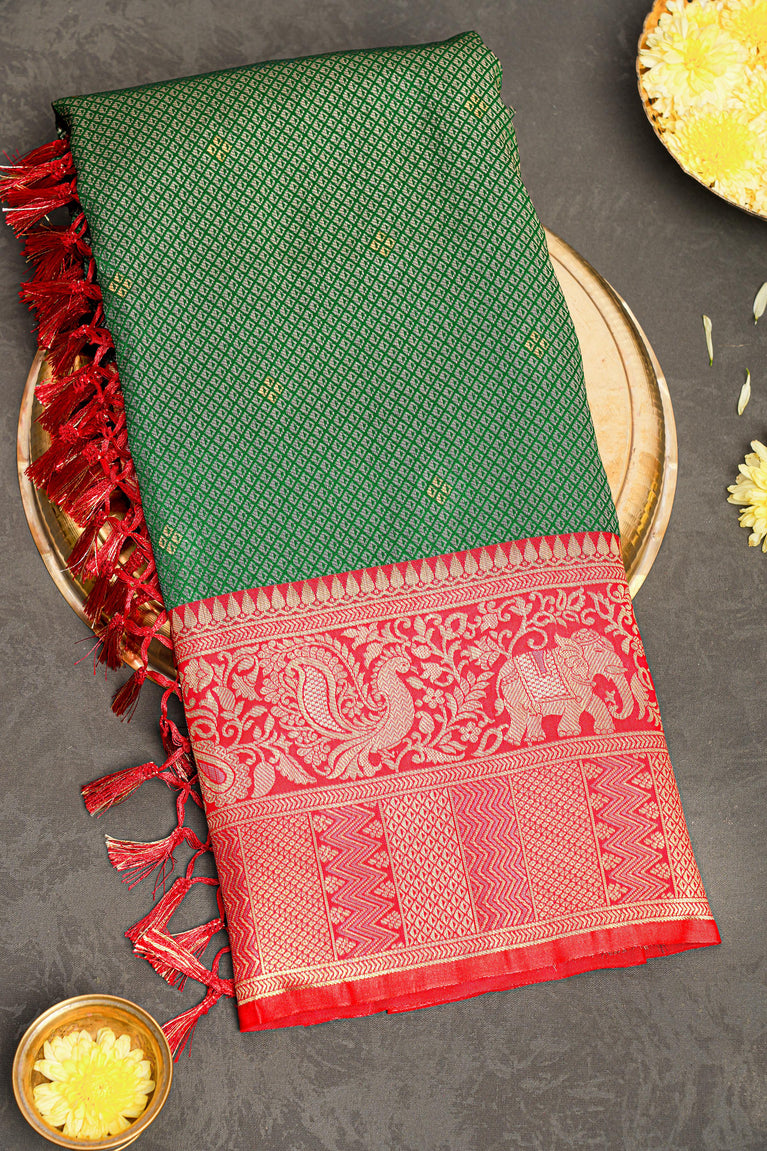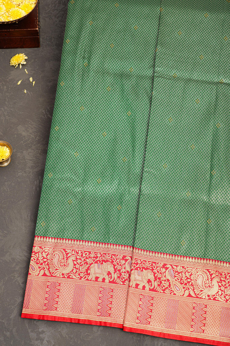DARK GREEN and GOLD JAAL DUPION SILK Saree with BANARASI