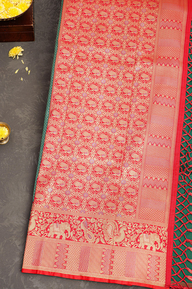 DARK GREEN and RED BROCADE SILK Saree with BANARASI FANCY