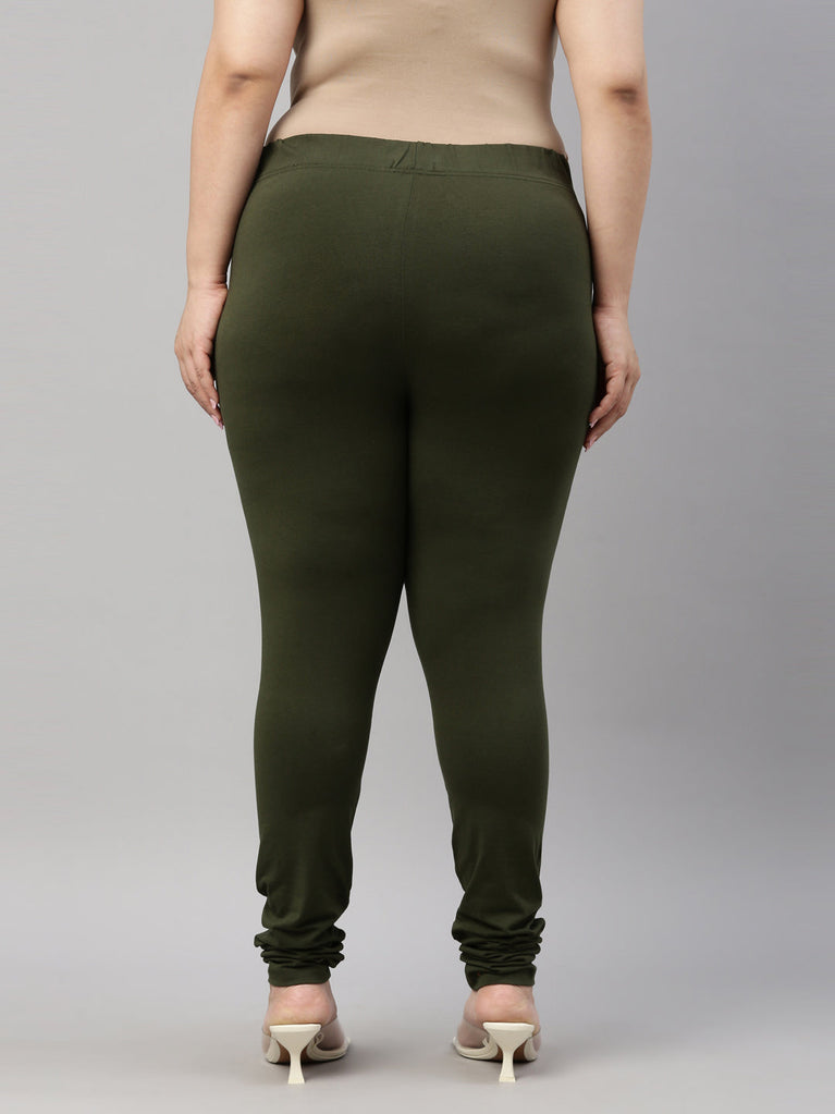 Go chic with a pair of Dark Olive Solid Churidar Leggings. Made from high quality cotton, it has a elasticised waistband & gathers at the hemline.