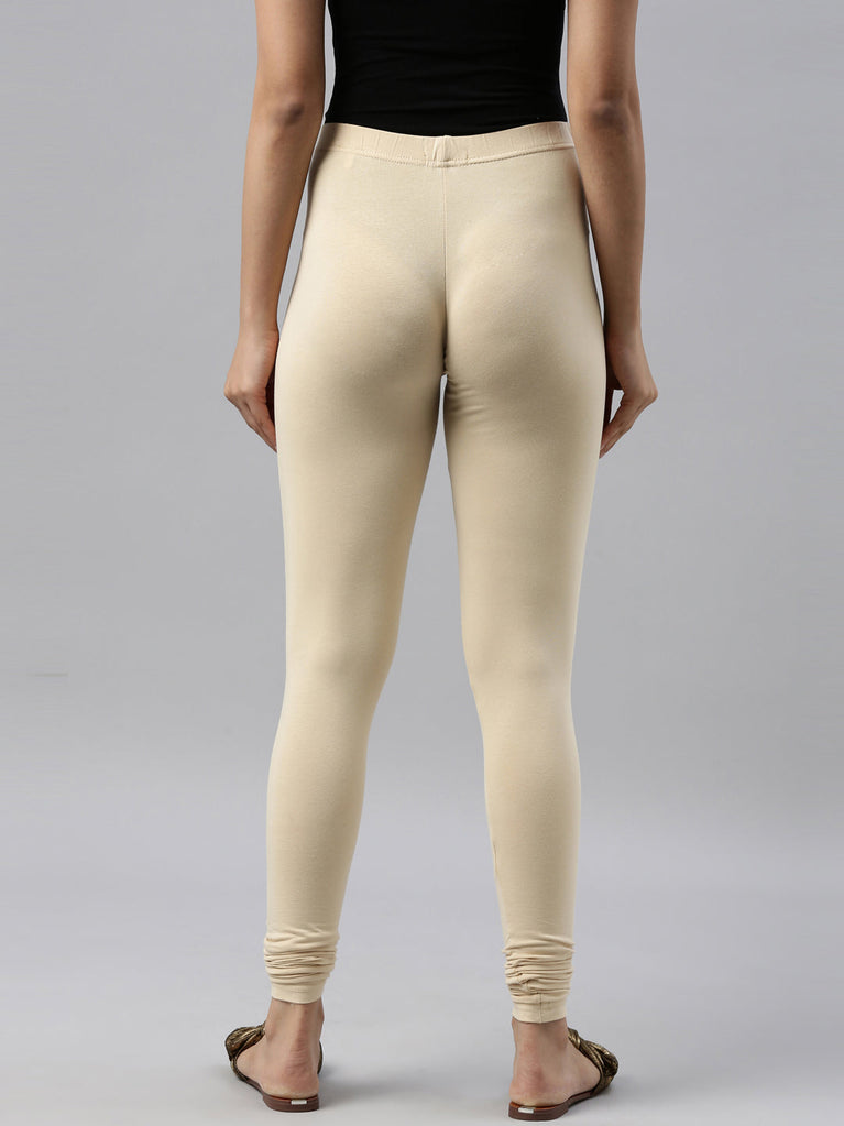 Go chic with a pair of Dark Cream Solid Churidar Leggings. Made from high quality cotton, it has a elasticised waistband & gathers at the hemline.