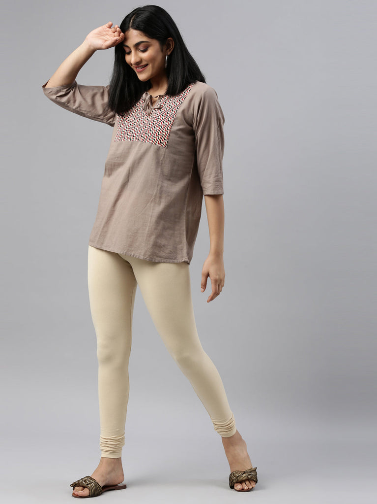 Dark Cream Cotton Stretch Churidar