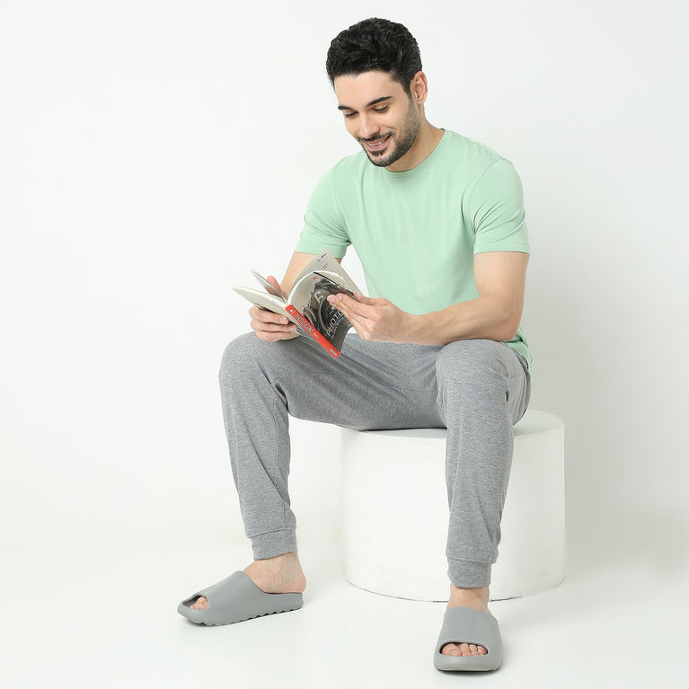 This modern home theme, solid pattern t-shirts has a crew neck and half sleeve. Made from modal cotton mobilon , it is soft and comfortable to wear.
