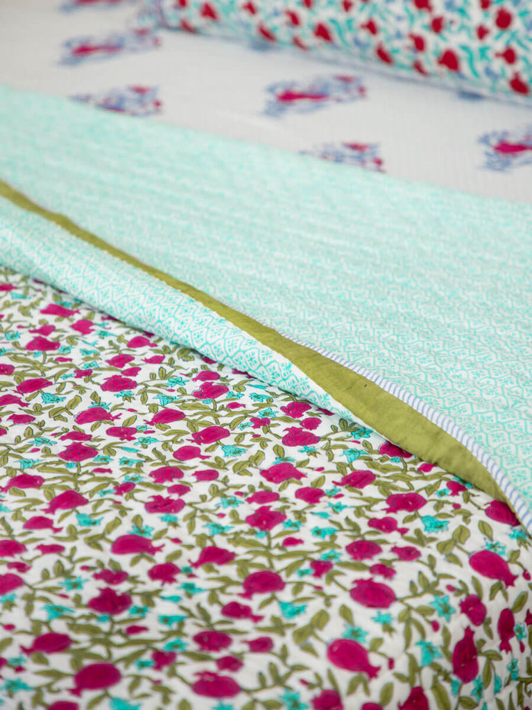Fruit of Paradise Block Printed Cotton Quilt