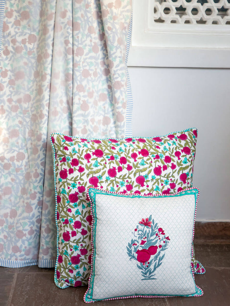 Fruits of Paradise Block Printed Cotton Cushion Cover - 24 Inch