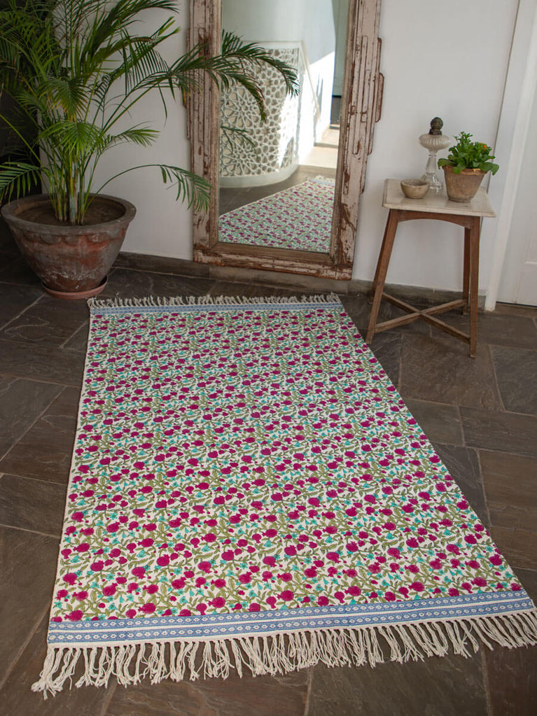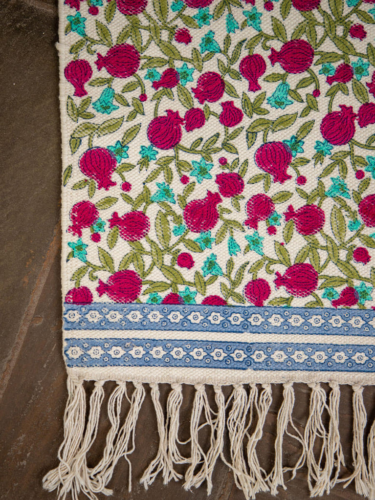 Fruits of Paradise Block Printed Cotton Dhurrie Rug