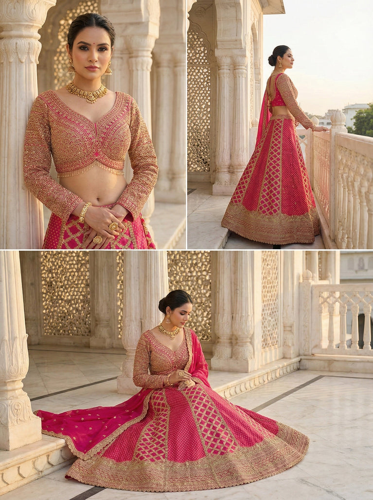 Embrace timeless elegance with this exquisite Gajari Tissue Hand Embroidery Ghagra Set. Crafted from luxurious tissue fabric in a rich gajari hue, this traditional ensemble showcases intricate hand embroidery work that reflects authentic artisanal craftsmanship. The gracefully draped ghagra silhouette offers a flattering fit, while the detailed embellishments add an air of refined sophistication. Perfect for weddings, festivals, and special occasions, this set combines heritage aesthetics with contemporary grace. An investment piece that celebrates Indian textile artistry and timeless style.