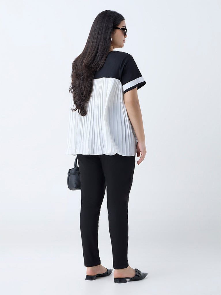 Thoughtfully designed for feminine dressing, this black blouse by Gia features delicate pintuck detailing that enhances structure while complementing curves. Crafted from a sumptuous fabric, it is finished with a collar, concealed button placket and full sleeves with buttoned cuffs—making it an elegant choice for office hours, evening outings or dressed-up weekends.