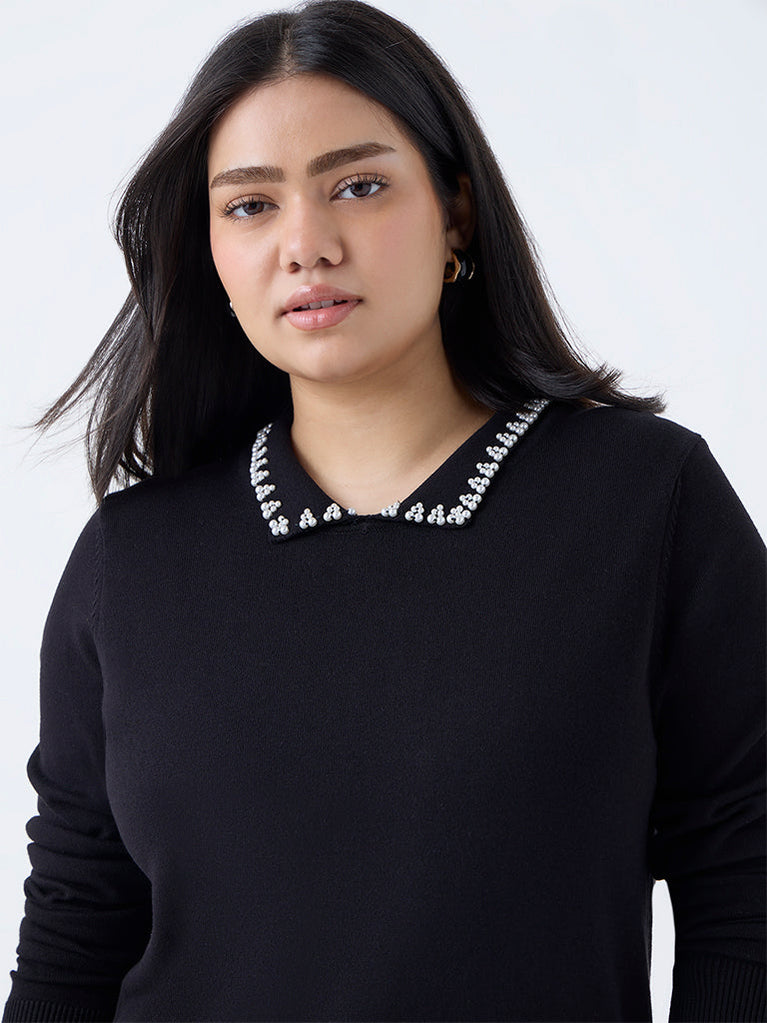 Elevate cold-weather edits with this black knit sweater by Gia, designed with a crisp contrast collar for contemporary charm. Finished with full sleeves, it brings equal measures of comfort and sophistication to your everyday wardrobe.