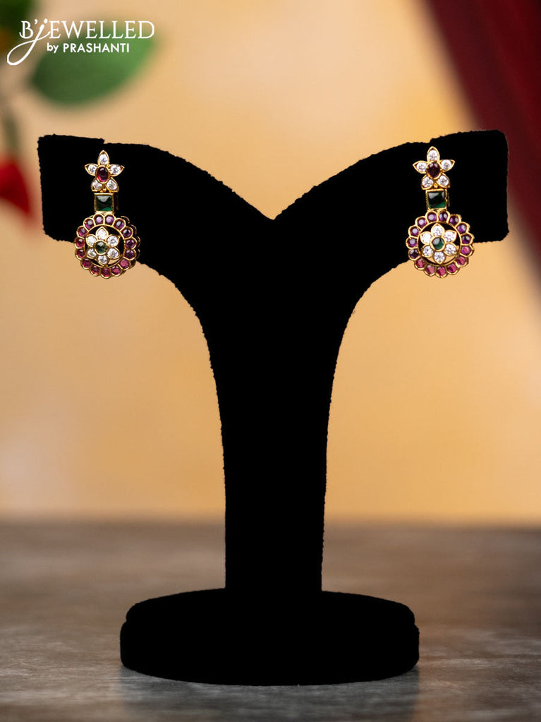 Antique jhumkas floral design with kemp & cz stones and pink beads hangings