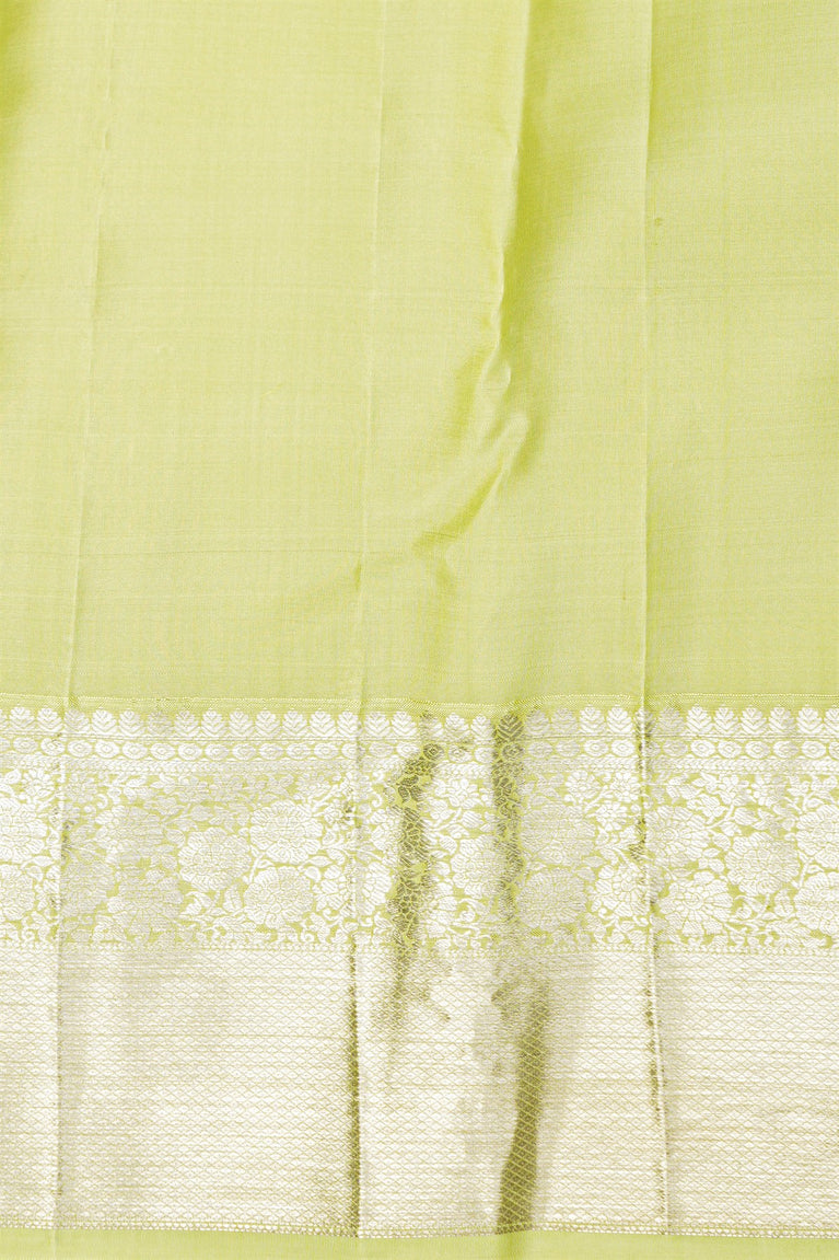 This painstakingly handwoven Kancheepuram Silk Buttis Saree, simple in design yet rich in traditional spirit, is sure to create a lasting impression at your celebrations. This saree has Rudhasha Buttis strewn all over its lustrous Light Grey base, which is framed by a shimmering Brocade With Animals border that contrasts perfectly with the saree and couples with an expertly hand-woven Brocade With Animals And Rudhasha Buttis pallu that stands at the saree's juxtaposition. This timeless work of art is ideal for any special occasion, including weddings.