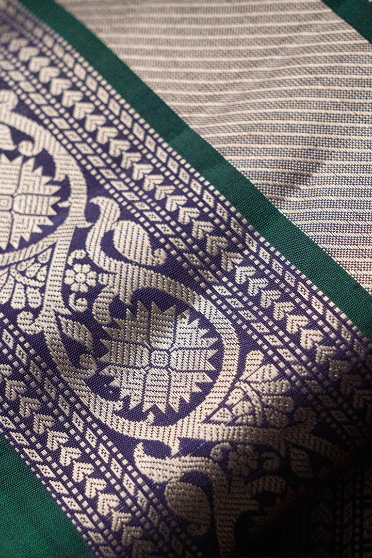 Mandir Light Grey & Yellow Banarasi Motifs Saree