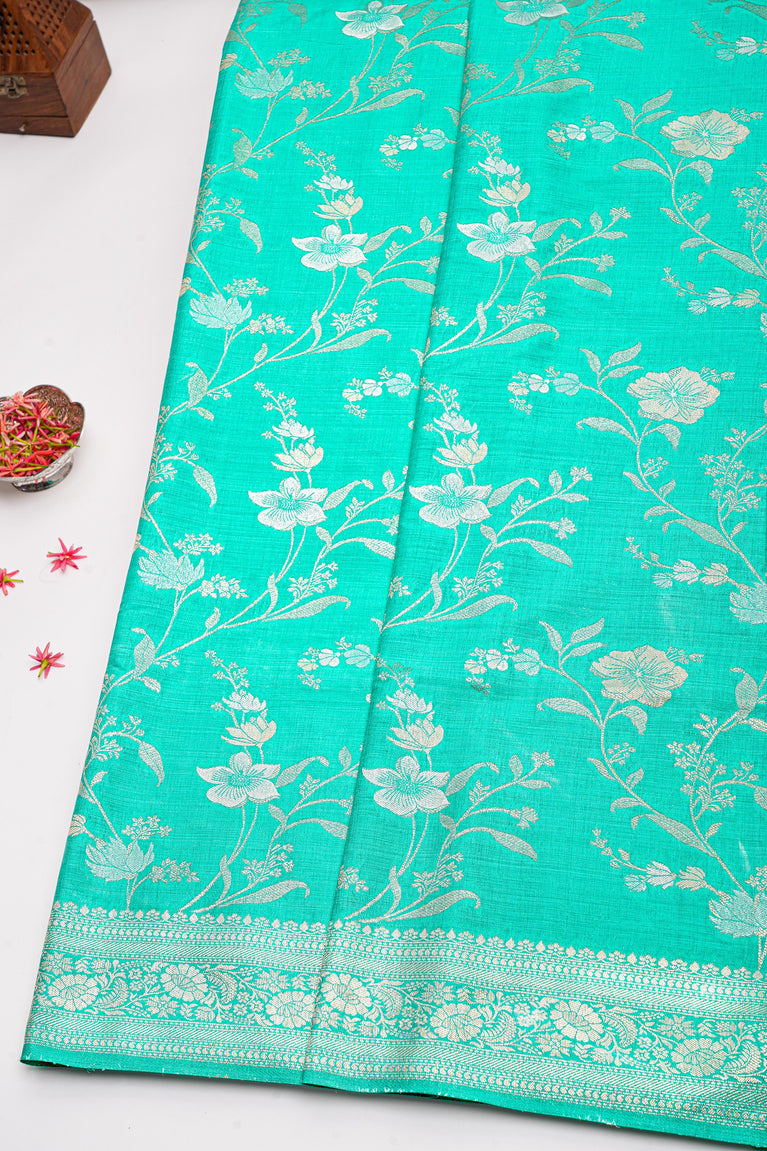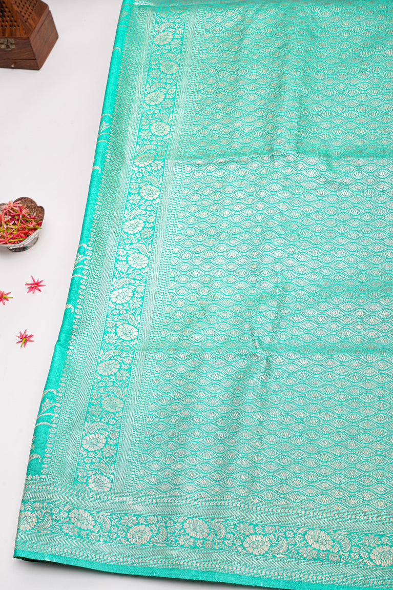 SEA GREEN and GOLD FLORAL JAAL SILK Saree with FANCY