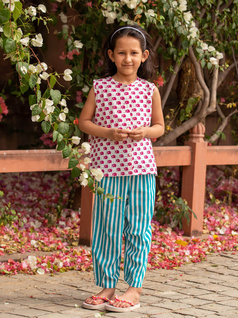 Set of 2 - Flower Garden Organic Cotton Block Printed Top & Pants Set