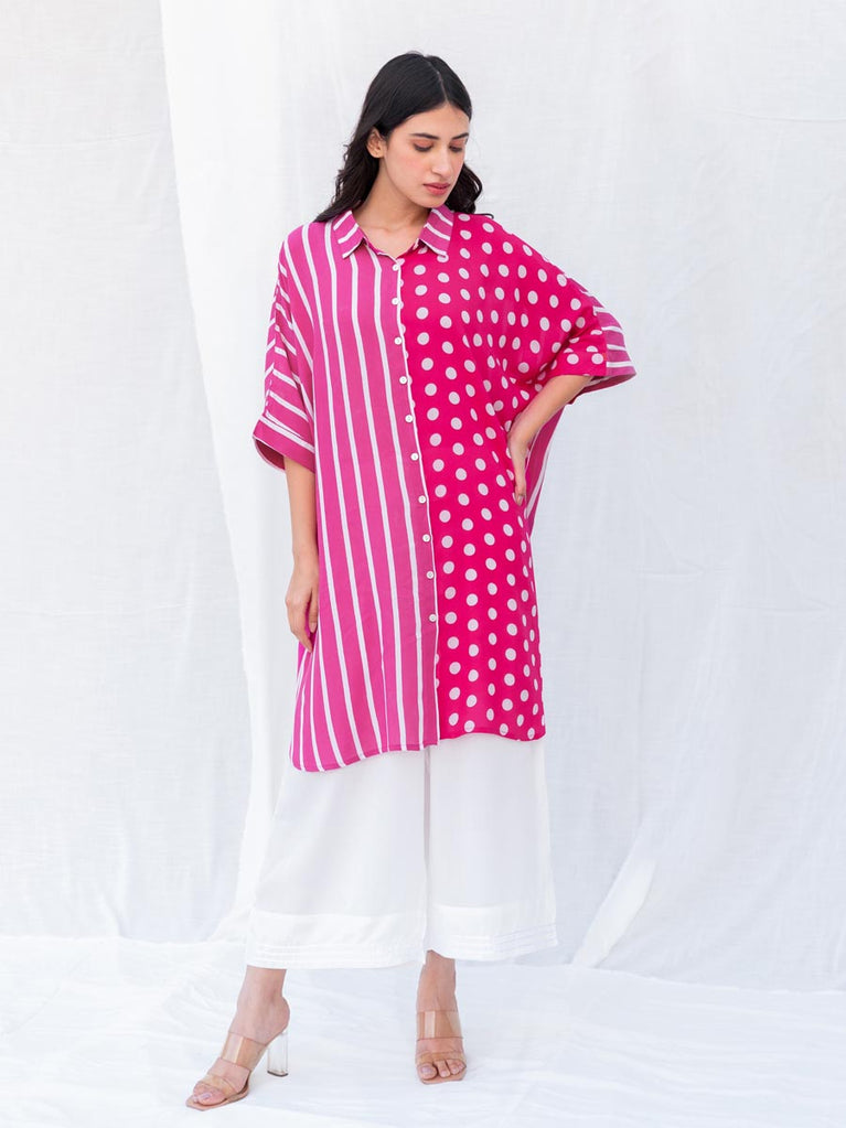 Set of 2 - Pink Summer Oversized Shirt and Palazzos