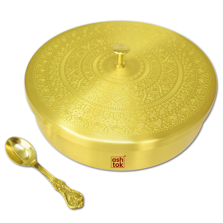 Brass Kadai with lid, Kadai for deep frying, cooking and with kalai lining inside
