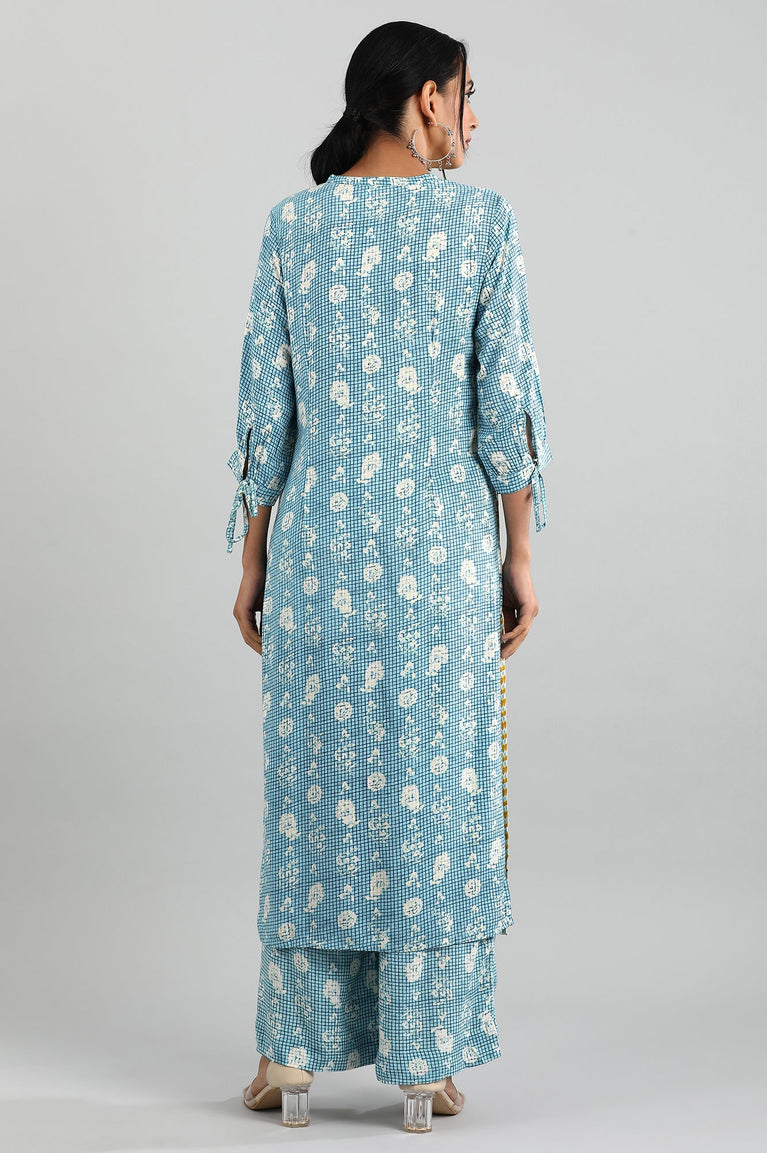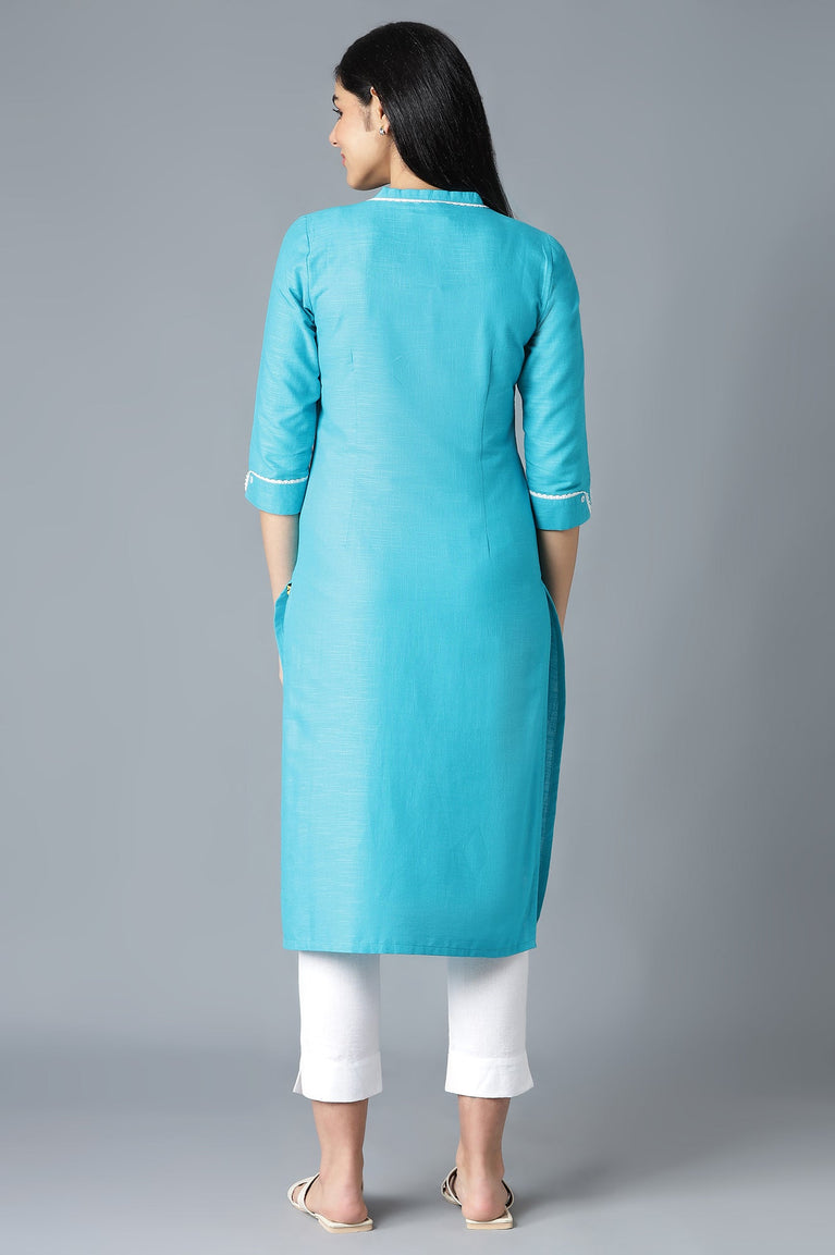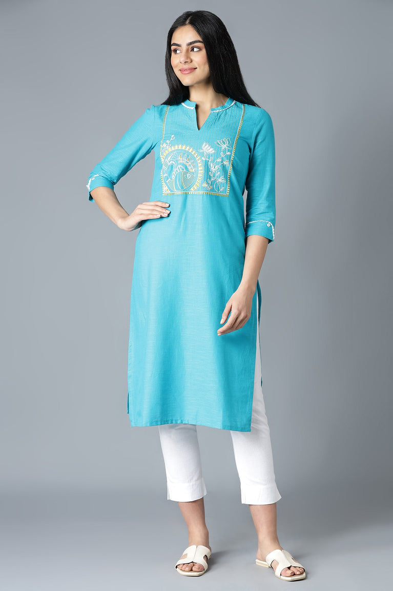 Embrace ethnicity in style by wearing blue coloured kurta. This modern ethnic kurta will uplift your casual look, whether you're on a date or in office it's straight fit will give an elegant yet stylish look.