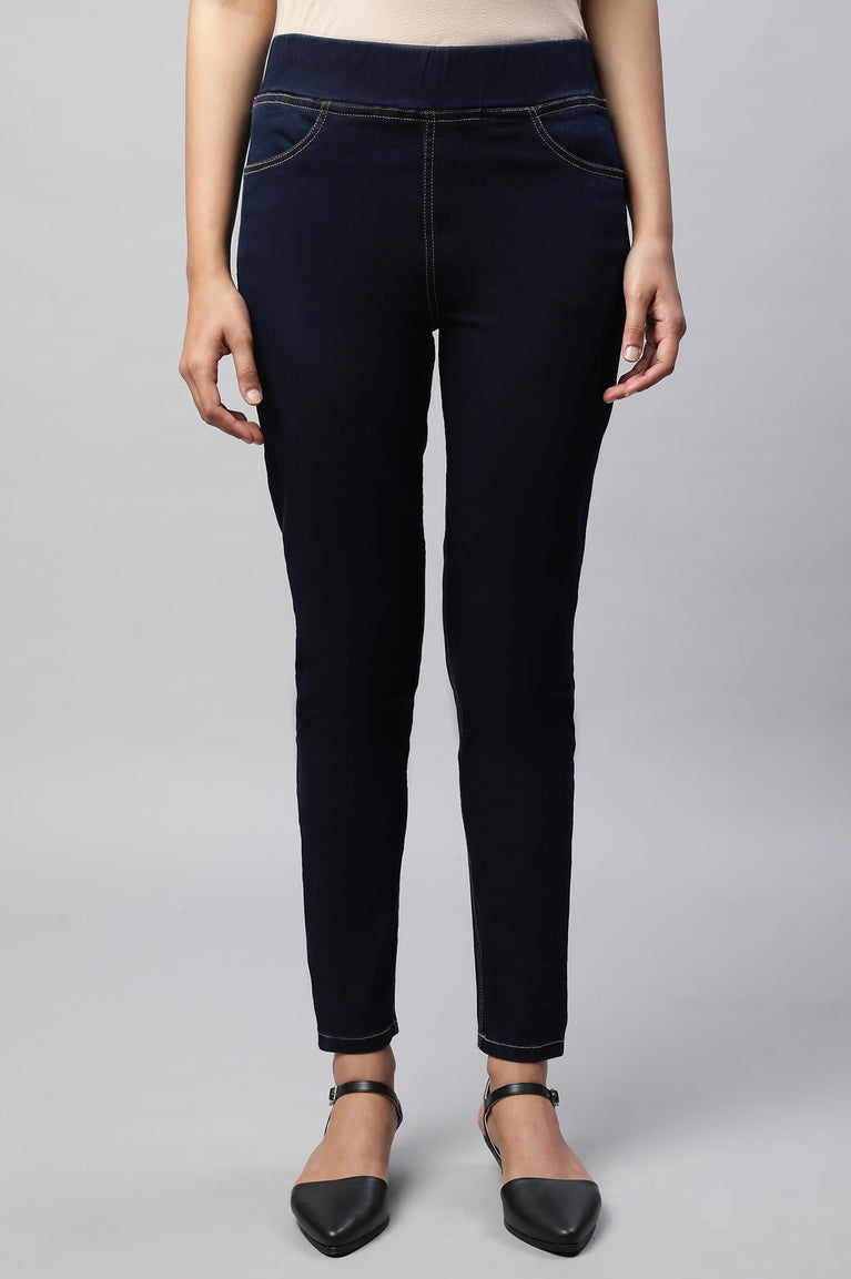 This Jegging In Denim Lycra Comes In Mid-Rise And Elasticated Waistband. It Also Has Both, Front And Back Pockets. Its Tretchability Makes It Comfortable For All Day Wear.